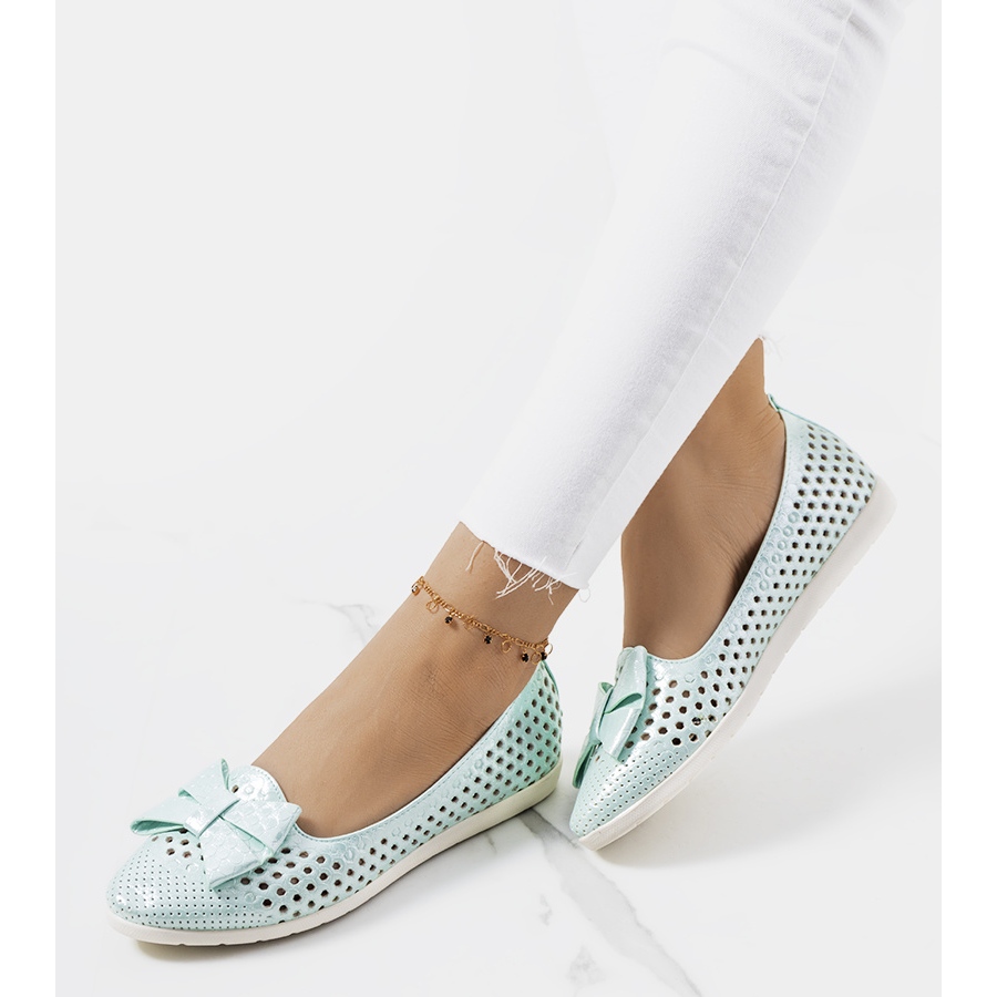 Découvrez le charme et le confort avec les ballerines Binney vertes brillantes ! Ces chaussures élégantes sont un choix parfait pour un style quotidien, alliant mode et confort. Fabriquées en cuir écologique de haute qualité, les ballerines séduisent par leur motif ajouré qui les rend parfaites pour les chaudes journées d'été.