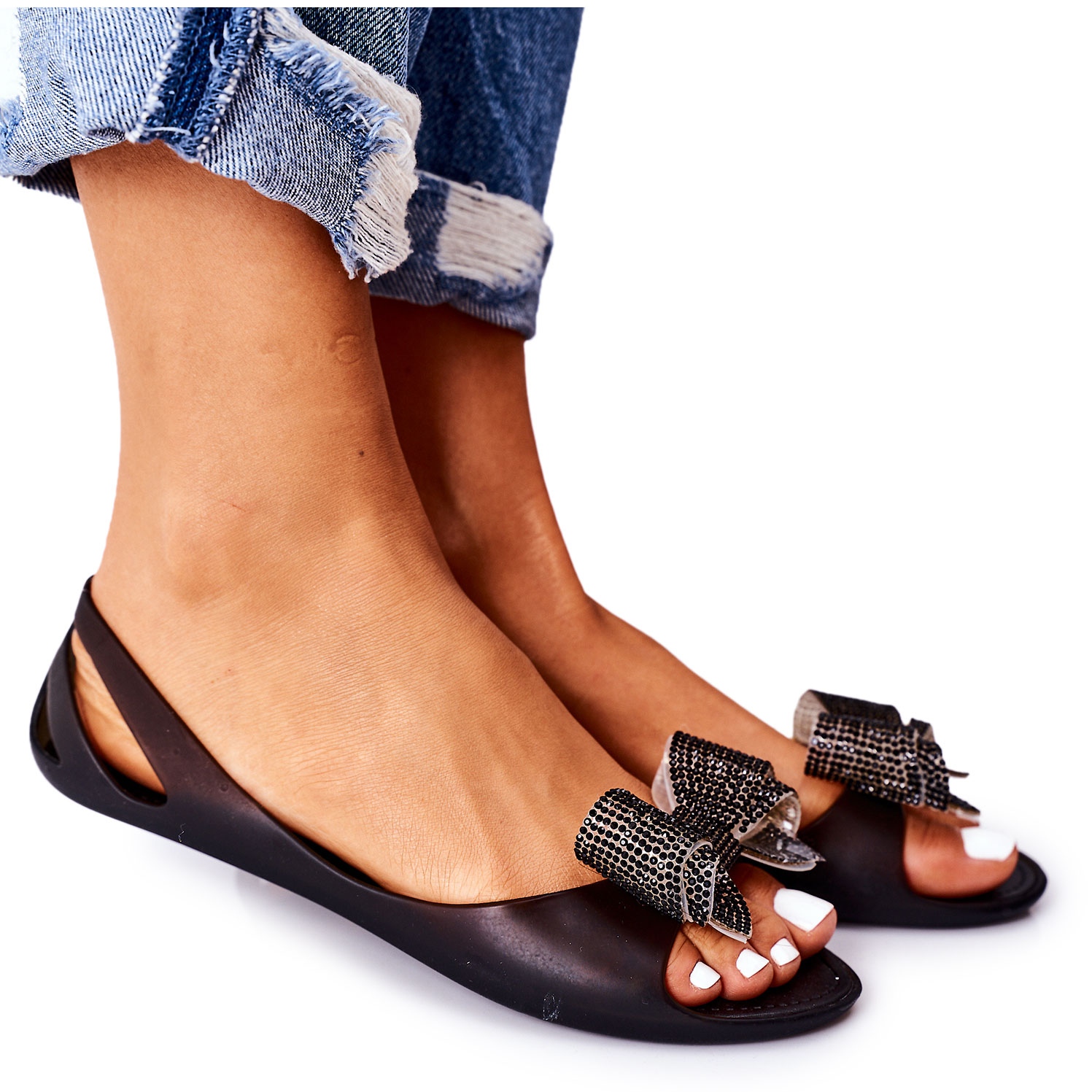 Découvrez l'élégance estivale avec les ballerines en caoutchouc Meliski Lu Boo noires ! Ces ballerines légères et confortables sont le choix parfait pour les femmes qui apprécient le style et le confort. La coupe tendance avec des strass délicats et un charmant nœud ajoutent un caractère unique qui enrichira toute garde-robe estivale.