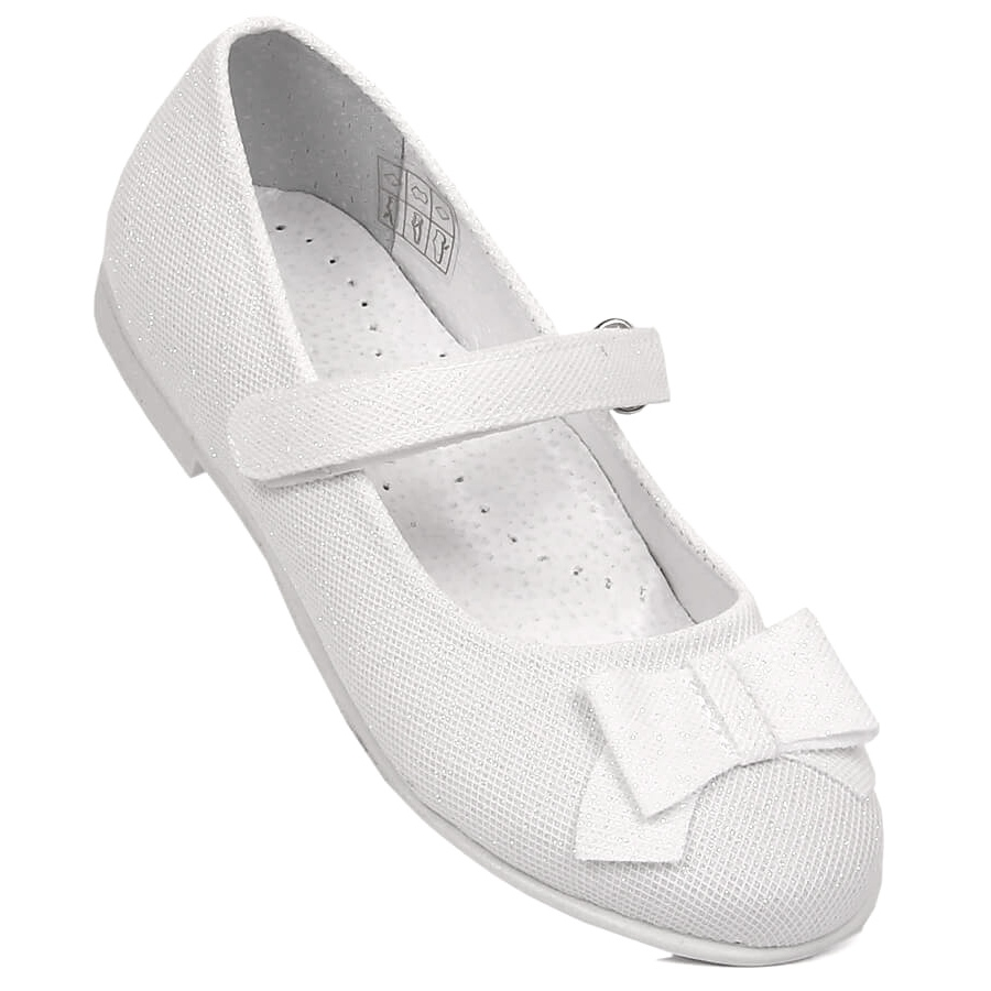 Les ballerines brillantes pour filles, modèle Kornecki 6802, sont le choix parfait pour les petites filles élégantes lors d'occasions spéciales, comme la première communion. Fabriquées en cuir écologique de haute qualité dans une couleur blanche classique, ces chaussures ravissent non seulement par leur apparence, mais assurent également un confort de port.