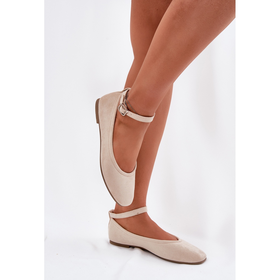 Détails: Ballerines d'éco en daim avec une ceinture et une pince beige