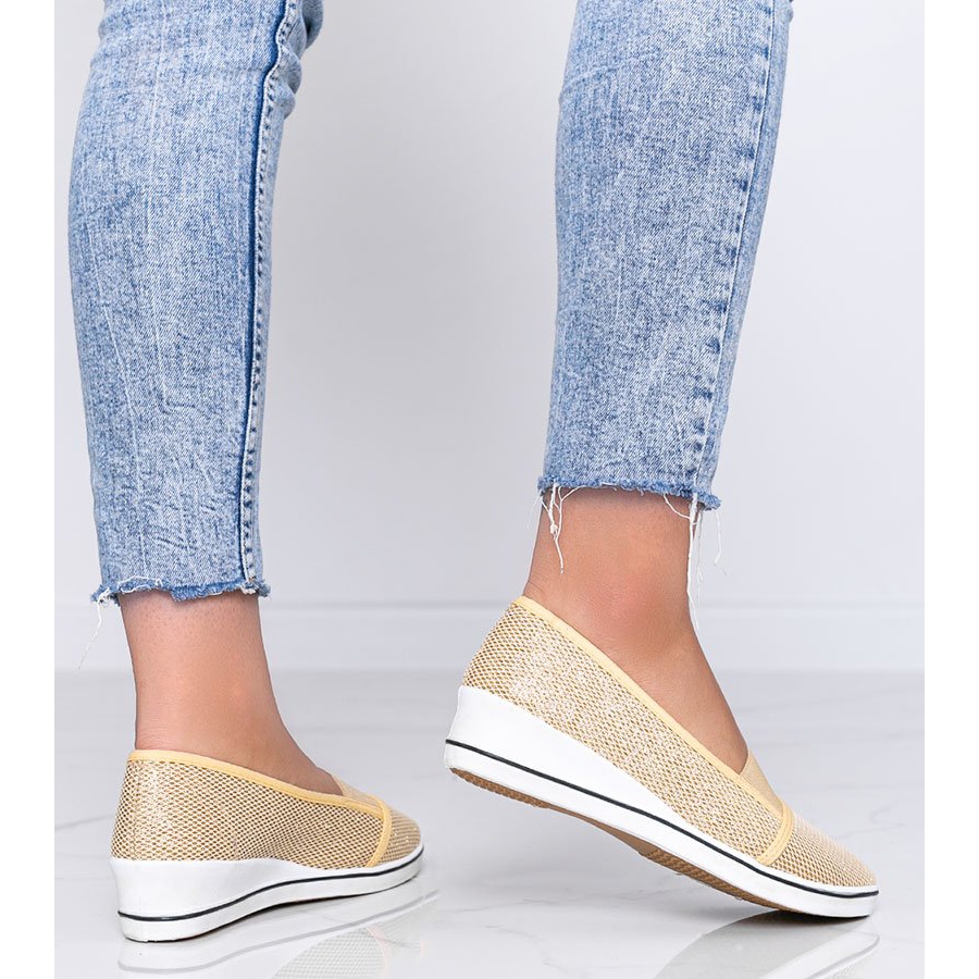 Les ballerines Glam Star Gold sont une combinaison de glamour et de confort. Le haut fait de tissu de haute qualité décoré avec un maillage délicat et des paillettes reflète magnifiquement la lumière, donnant aux chaussures un look de soirée efficace. Un coin discret avec une hauteur de 4 cm a subtilement mince la figure, sans renoncer à la commodité du port de tous les jours.