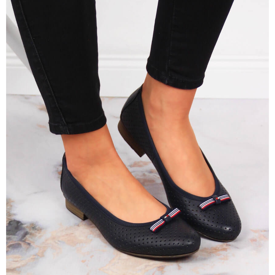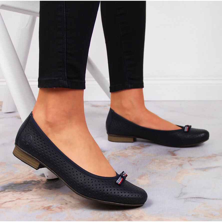 Rieker Ballerines en cuir ajourées bleu marine pour femmes Rieker 51997-15