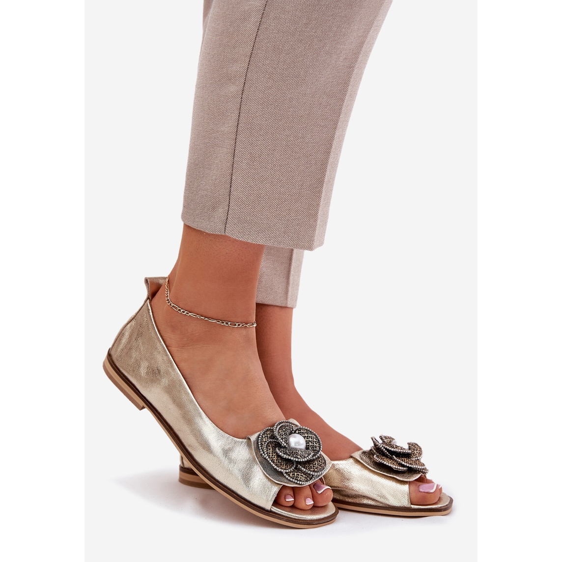 Ballerines en cuir avec doigts nus et une fleur de zazoo 1870 Zlotys doré