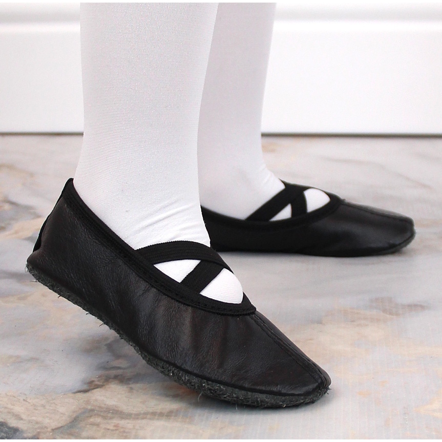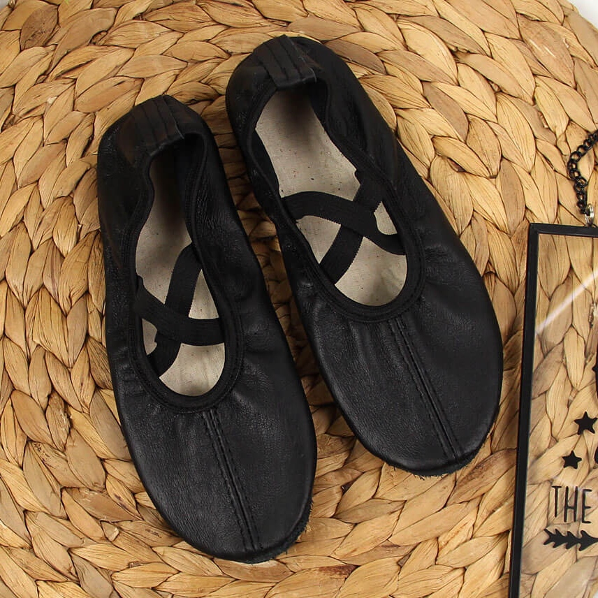 Des chaussures de ballet nazo élégantes et pratiques, fabriquées en Pologne en cuir naturel de haute qualité. Parfait pour le ballet, les cours de danse, la gymnastique, les cours rythmiques et les chaussures à domicile confortables ou pour la maternelle. La couleur noire classique vous fait facilement les faire correspondre à votre tenue d'entraînement.