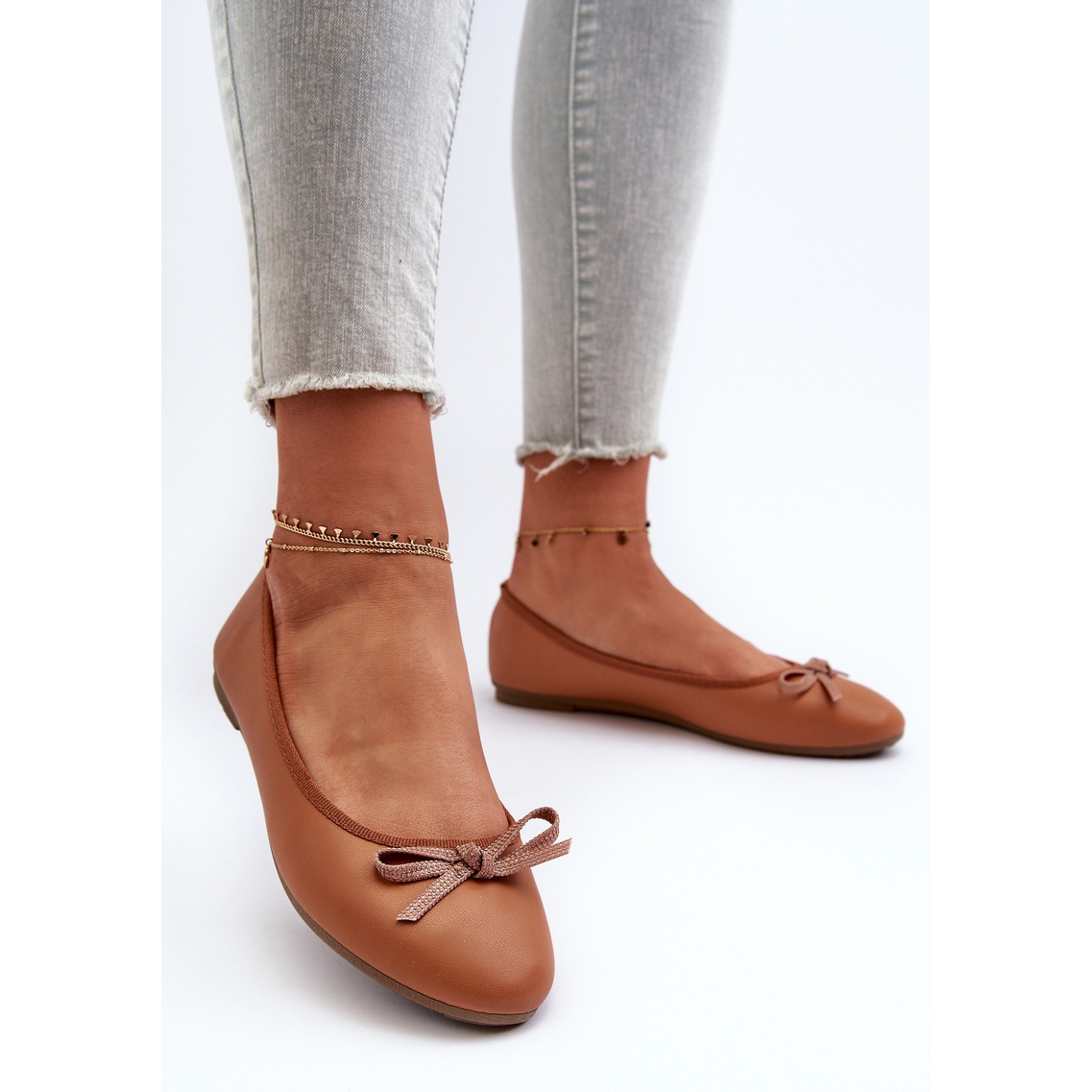 Détails: Ballerines En Cuir Écologique Avec Noeud Camel Sandelal brun