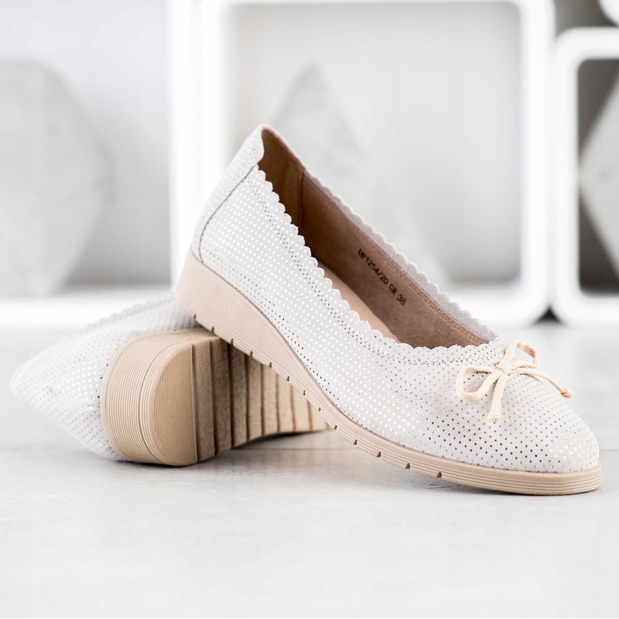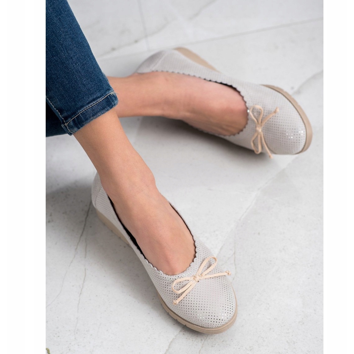 Les ballerines ont des bouts arrondis et un nœud délicat sur le devant, ce qui leur donne un look exceptionnellement féminin. Un avantage supplémentaire est une petite cale de 3 cm de haut, qui augmente le confort de port et assure un maintien du pied tout au long de la journée.