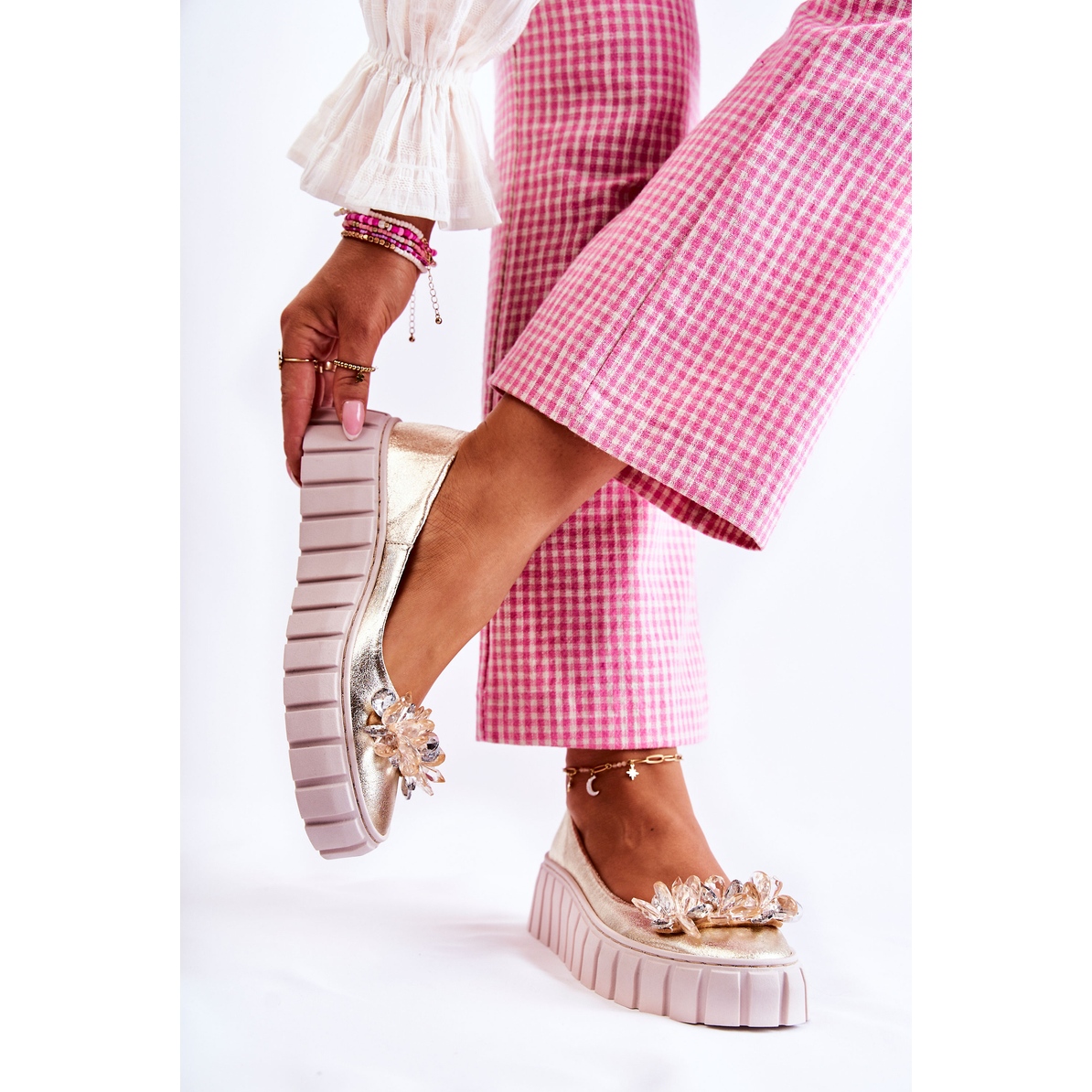 PA2 Ballerines En Cuir Sur Plateforme Ornement Ladette Dorée