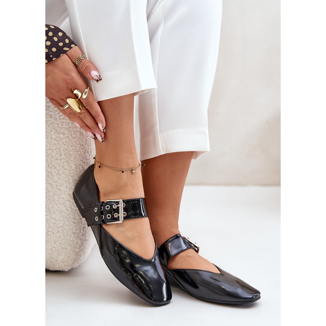 Découvrez l'élégance et le confort avec les ballerines vernies noires avec ceinture ! Ces chaussures élégantes pour femmes, fabriquées en cuir écologique de haute qualité, sont un choix parfait pour toute occasion. Grâce à la bride décorative réglable avec boucle, les ballerines assurent un ajustement parfait au pied, ce qui se traduit par un confort de port tout au long de la journée.
