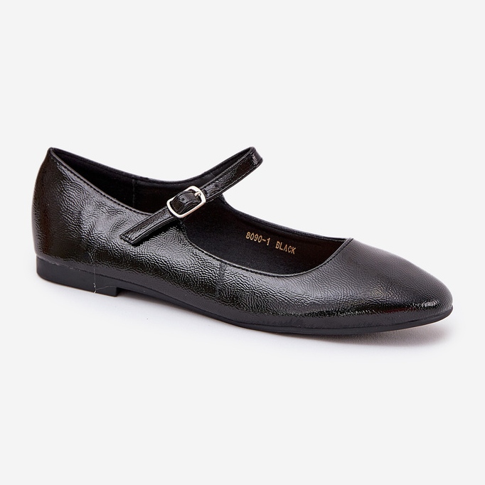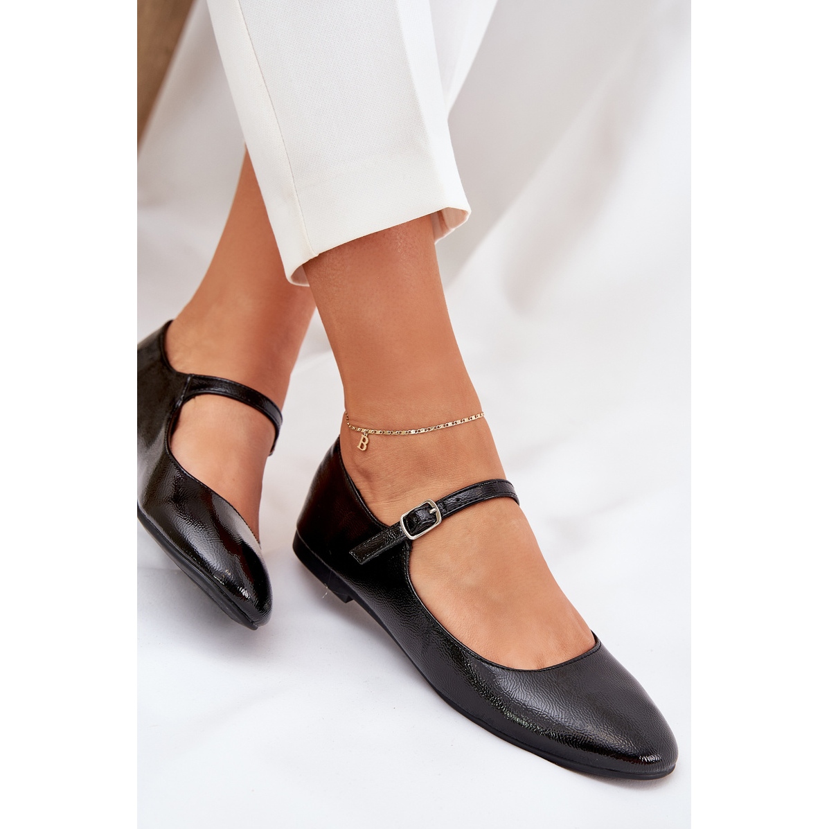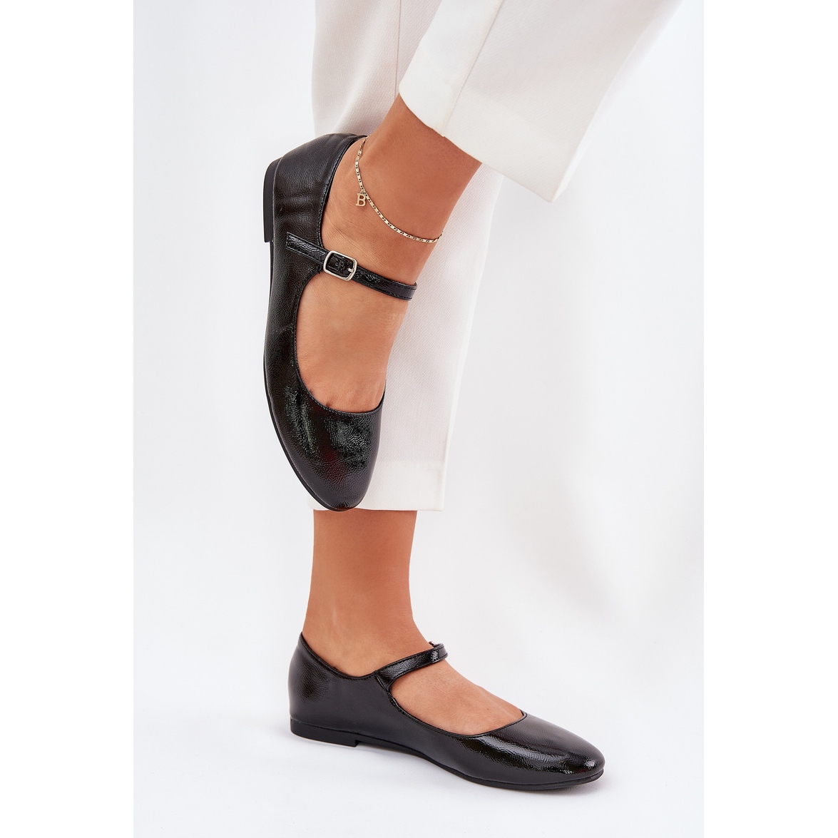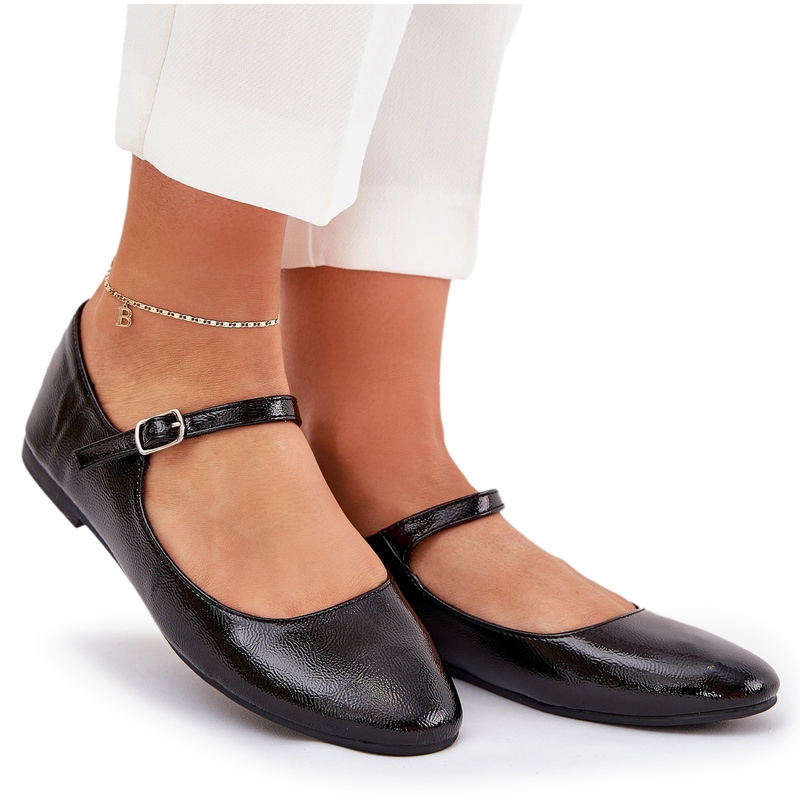 Détails: Ballerines en cuir verni avec ceinture, noir le noir