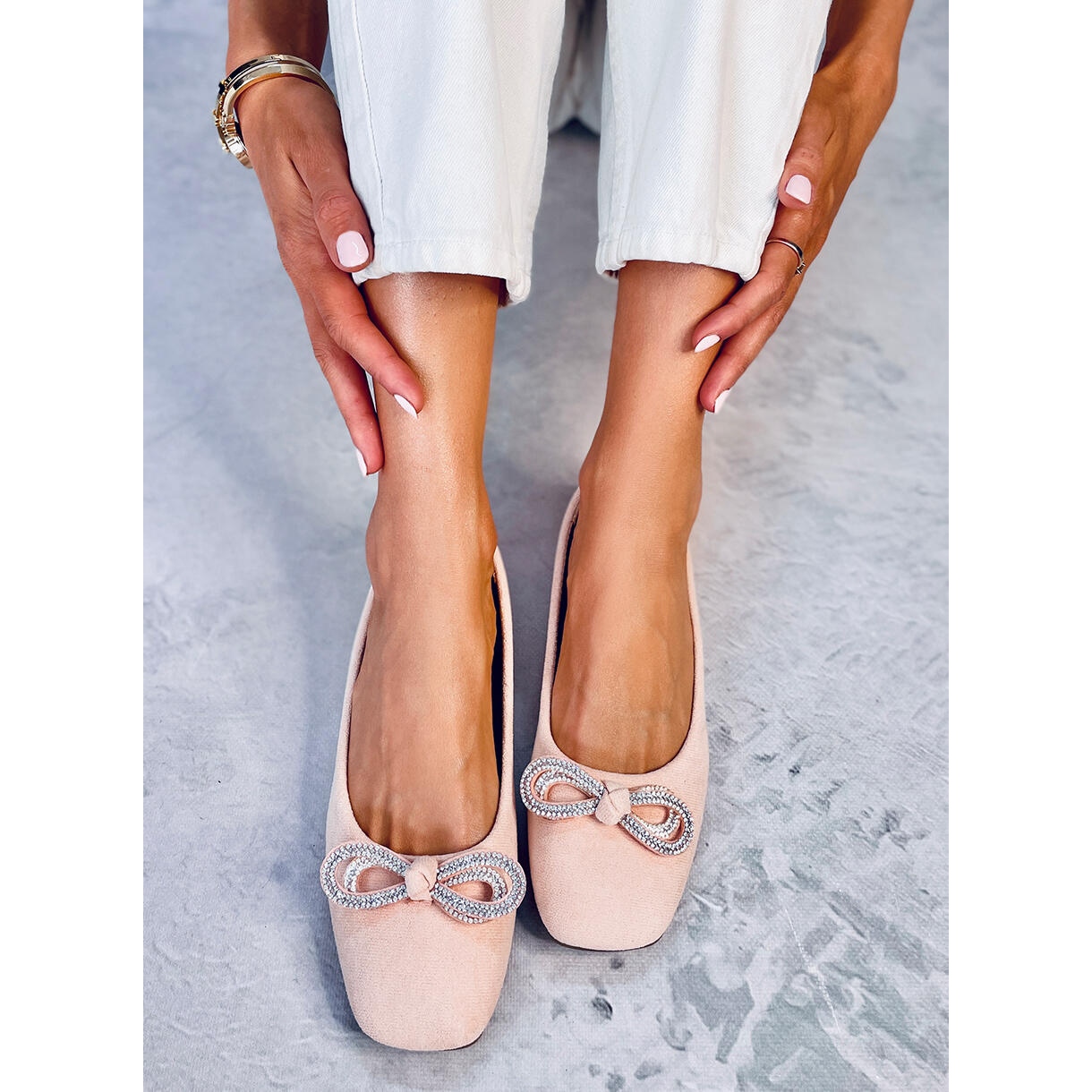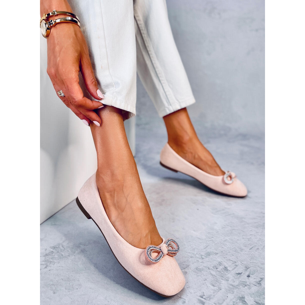 - Modèle: Ballerines en daim avec nœud décoratif
