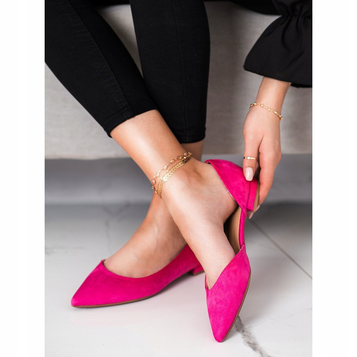 Découvrez l'élégance et le confort dans les ballerines tendances de Lovery - Ballerines en Suède avec une découpe d'une couleur rose intense ! Ces chaussures uniques sont la combinaison parfaite de style classique et d'accents modernes, parfaites pour un usage quotidien et des occasions spéciales.