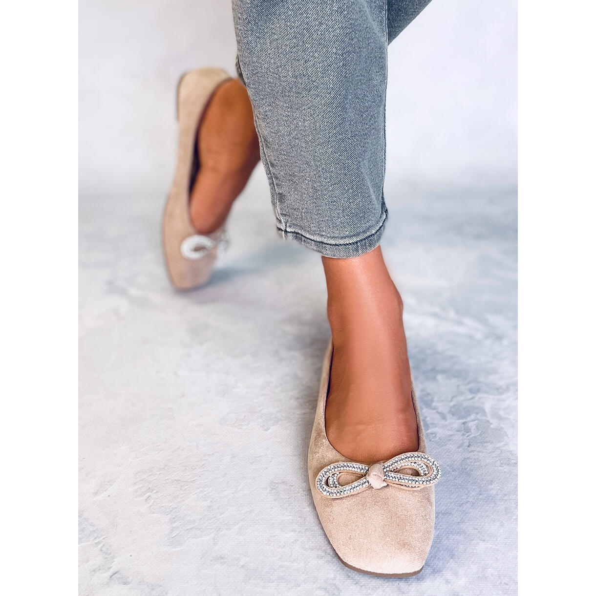 Détails: Ballerines en daim avec nœud de Serna Kaki beige