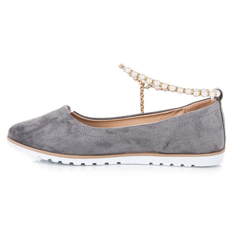 Détails: Ballerines en daim avec perles de vinceza gris
