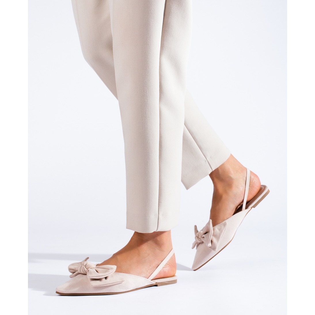 Détails: Ballerines en daim beige à nœud de Shelovet