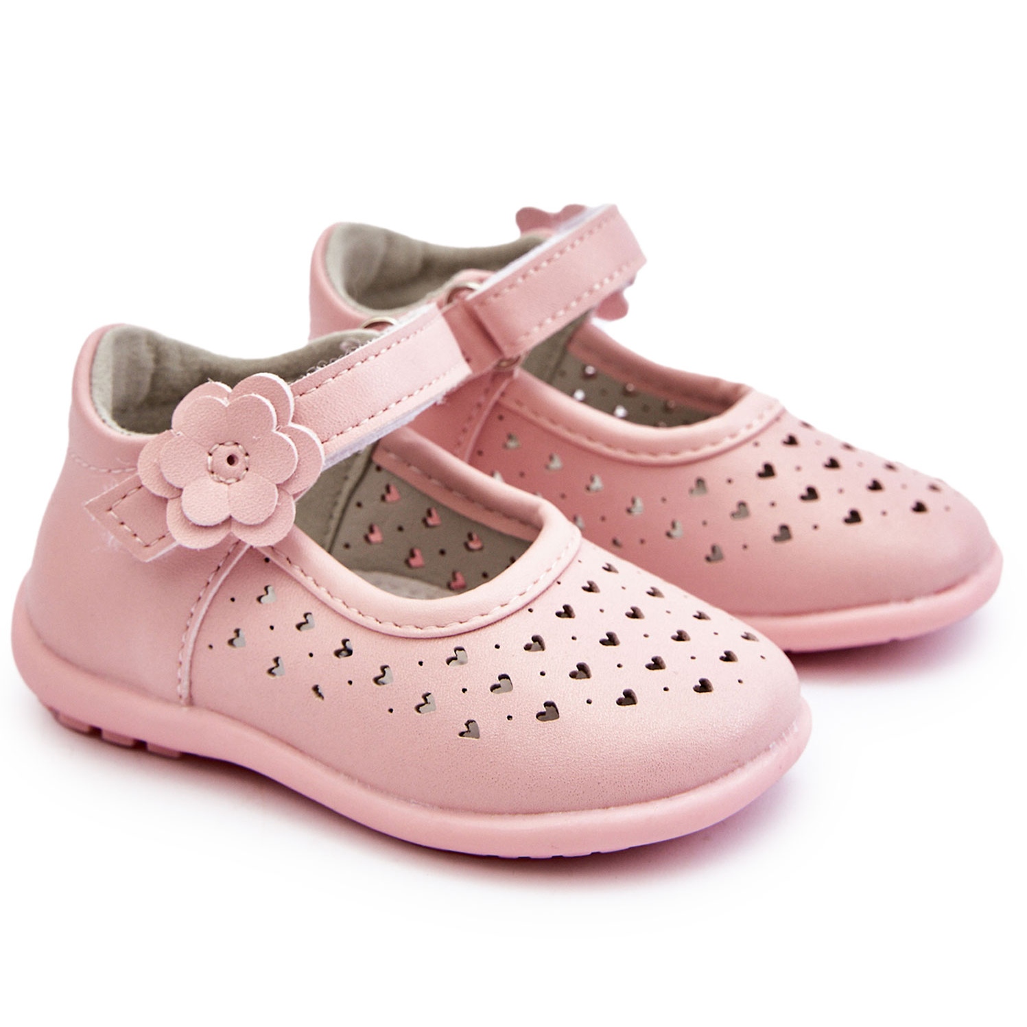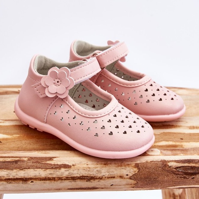 Nous vous présentons de charmantes ballerines pour enfants PA1 en rose qui charmeront toutes les petites dames ! Fabriquées en éco-cuir de haute qualité, ces chaussures se caractérisent par un motif ajouré en forme de cœur qui leur confère un charme unique.