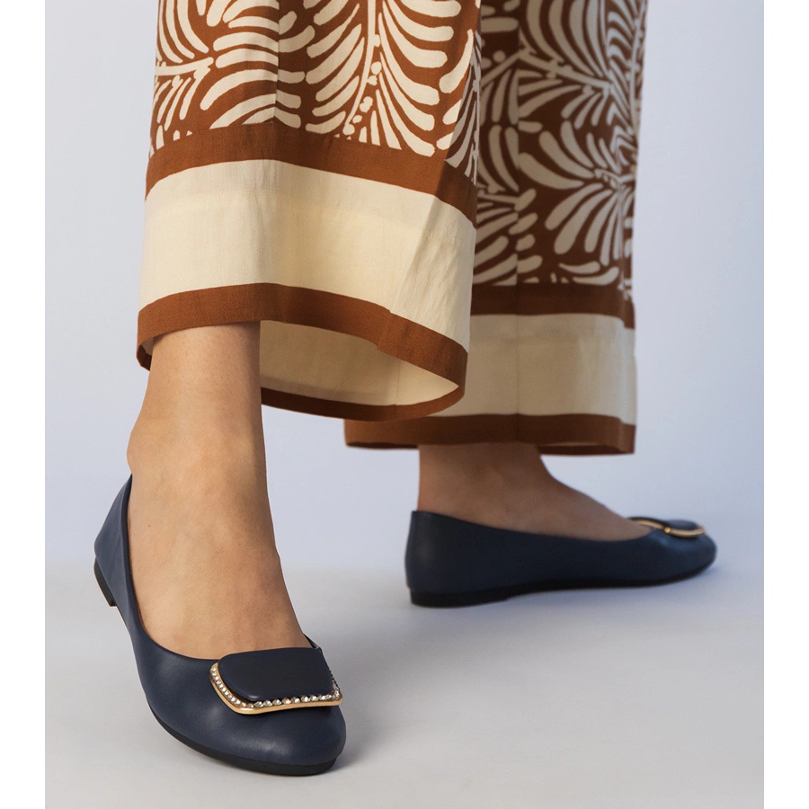 Rencontrez les ballerines féminines bleu marine avec des zircons qui combinent l'élégance et le confort. Ces chaussures élégantes sont un complément parfait à chaque garde-robe, en vérifiant diverses situations - à la fois au bureau et lors de réunions occasionnelles avec des amis.