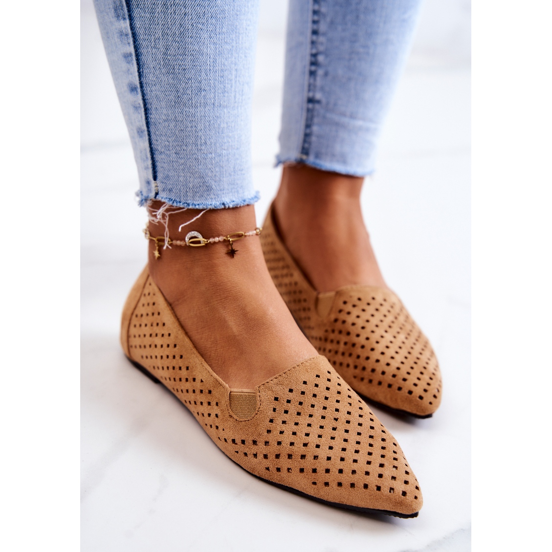 Détails: LU BOO Ballerines femme ajourées Slip-on Camel Rosario brun