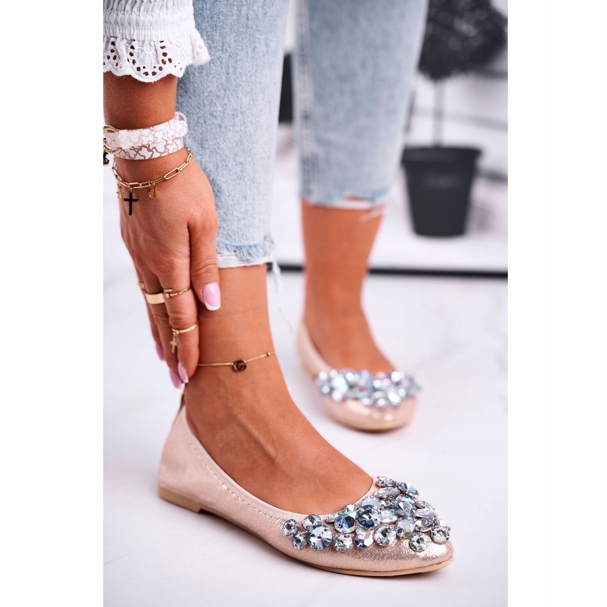 Détails: PS1 Ballerines Femme Avec Pierres De Cristal Doré d'or