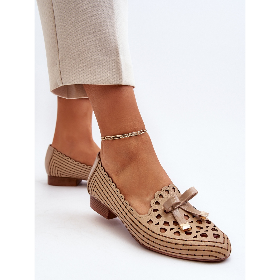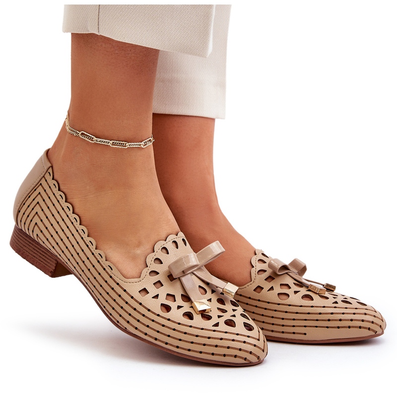Jezzi Jezzi Ballerines Femme Beige Ajourées Avec Noeud Nestavia