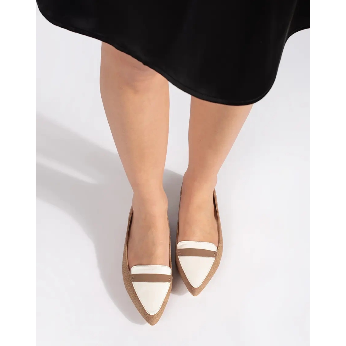 - Modèle: Ballerines beiges et blanches à bout pointu