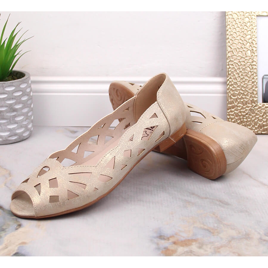 Fabriquées en cuir écologique de haute qualité, ces chaussures dorées garantissent non seulement un superbe look, mais sont également respectueuses de l'environnement. Le motif ajouré attire non seulement l'attention, mais assure également aux pieds une circulation d'air adéquate, ce qui est inestimable lors des journées les plus chaudes.
