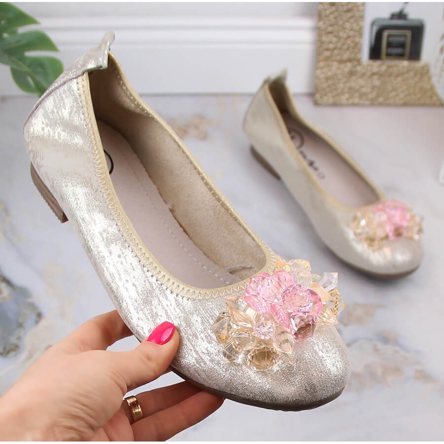 Détails: Ballerines femme en cuir à talons bas et cristaux dorés Filippo DP4527 d'or