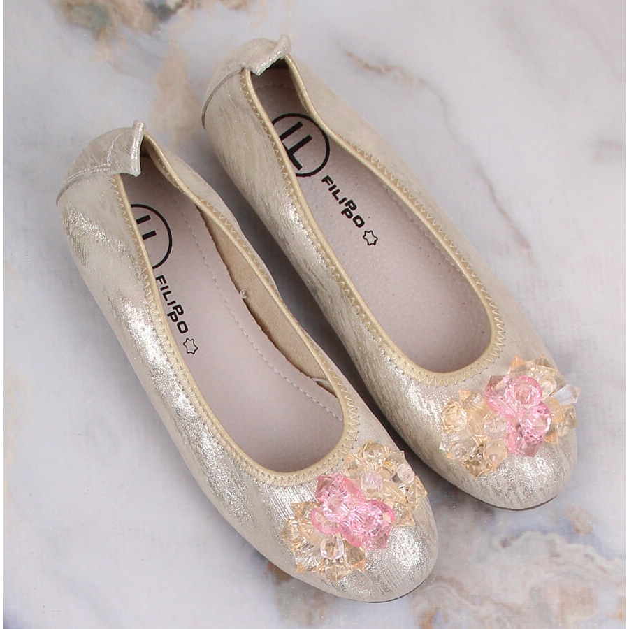 Filippo Ballerines femme en cuir à talons bas et cristaux dorés Filippo DP4527 d'or