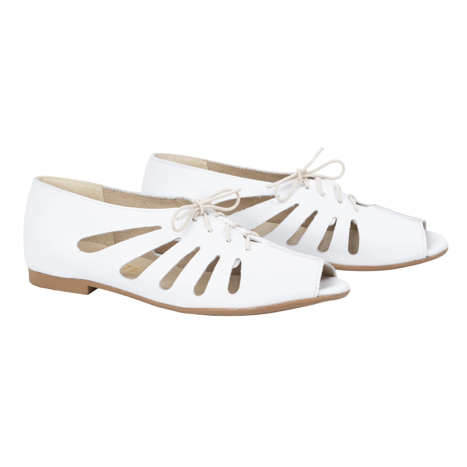 - Modèle: Ballerines femme en cuir ajouré à lacets