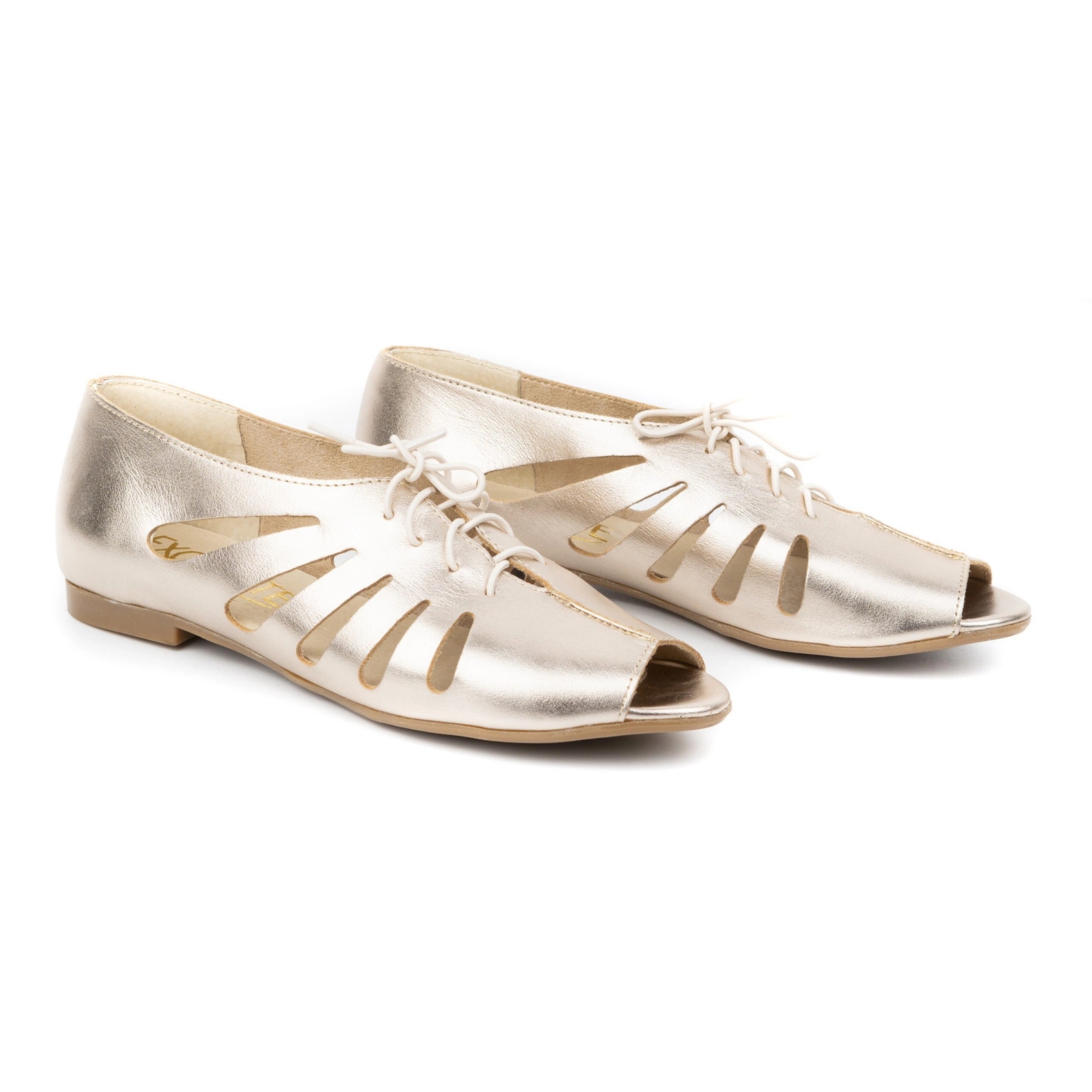 Détails: Exquisite Ballerines femme en cuir ajouré 1444EX Doré d'or