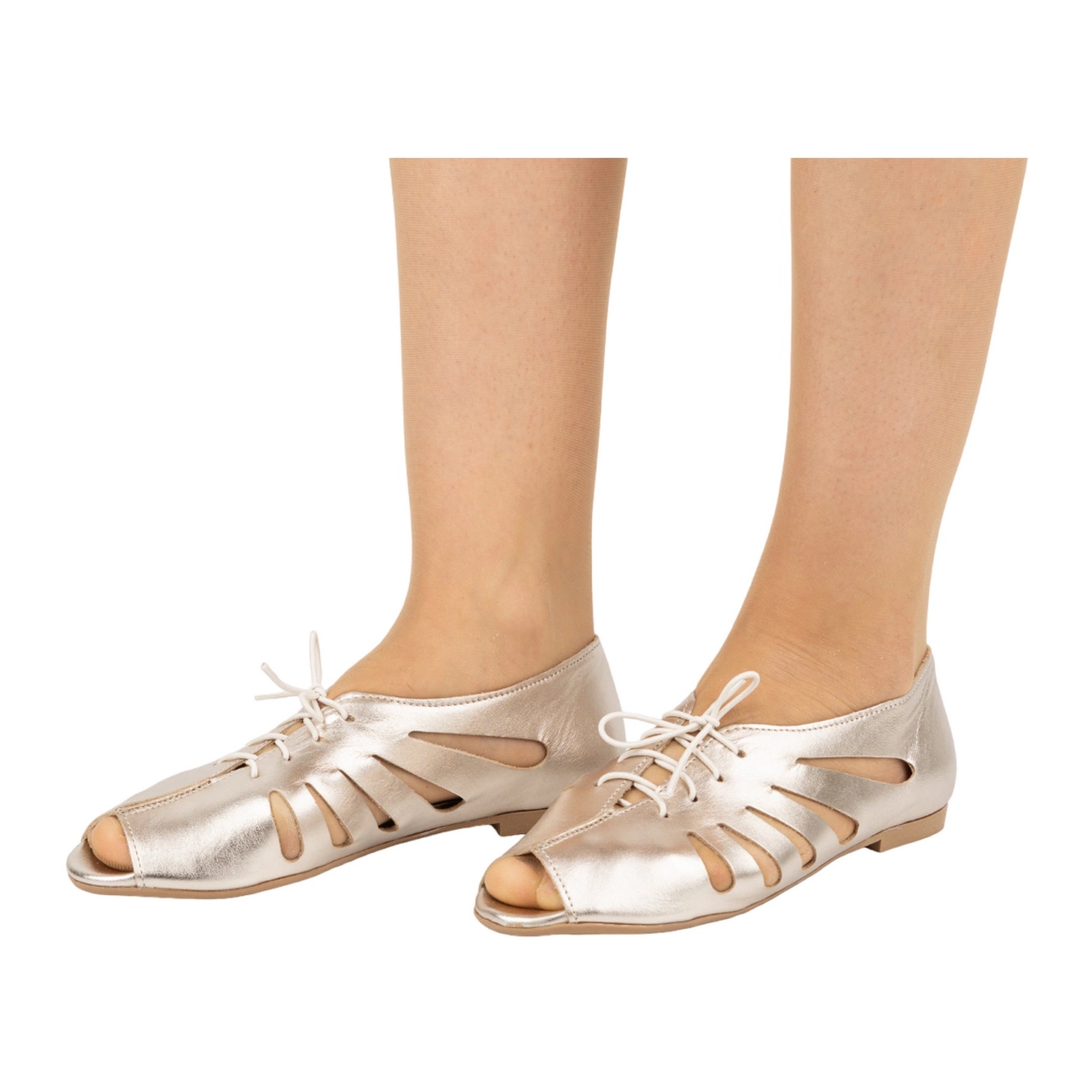 Découvrez l'élégance et la commodité les jours chauds grâce aux ballerines en cuir openwork exquises 1444ex en couleur dorée. Ces chaussures uniques combinent le style et la fonctionnalité, ce qui en fait un choix idéal pour chaque femme moderne.