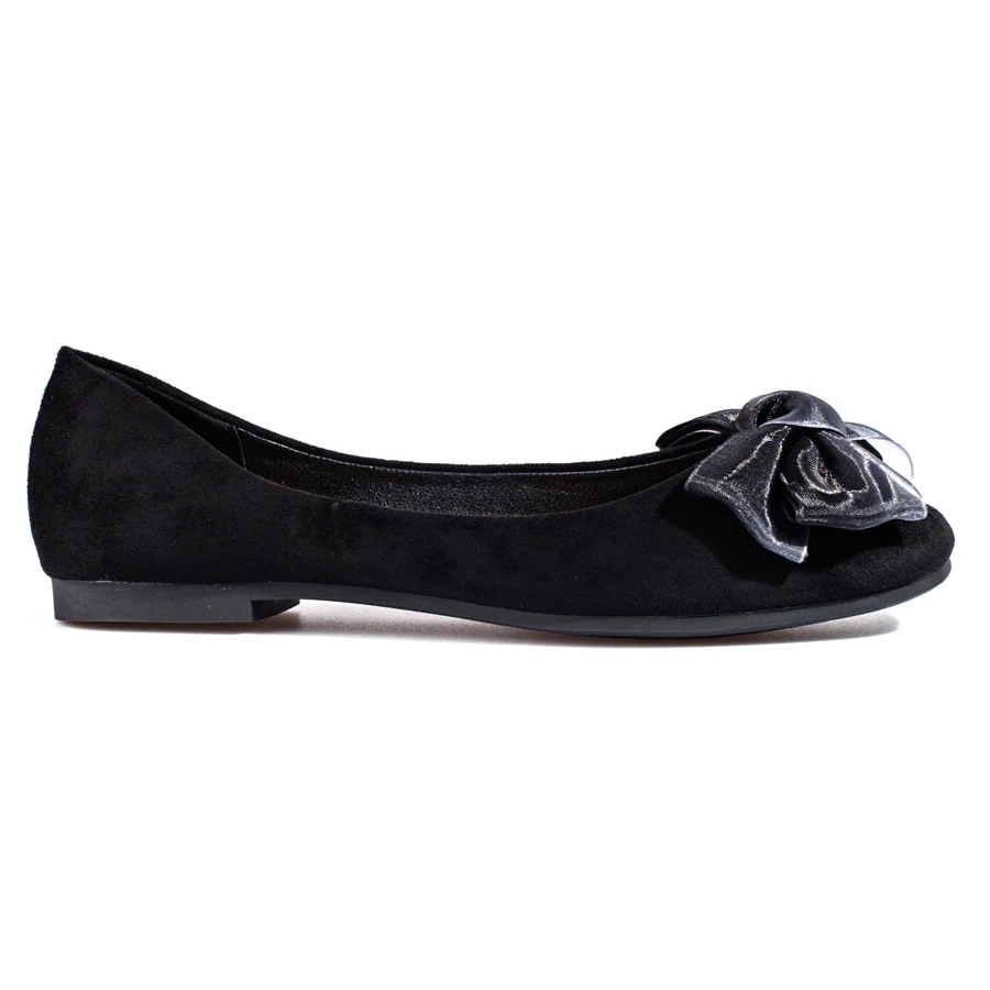 Shelovet - Ballerinas pour femmes en daim avec un arc, noir