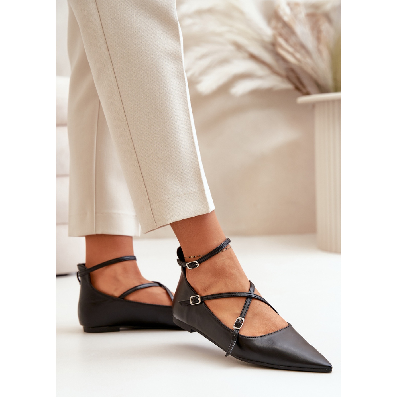 Nous présentons des ballerines en cuir noir élégantes, qui se trouvent dans toutes les garde-robes à la mode. Ces chaussures se caractérisent par une coupe unique, grâce à un NOSK dans un Spitz, qui a éliminé optiquement les jambes, ajoutant toute subtilité et style.