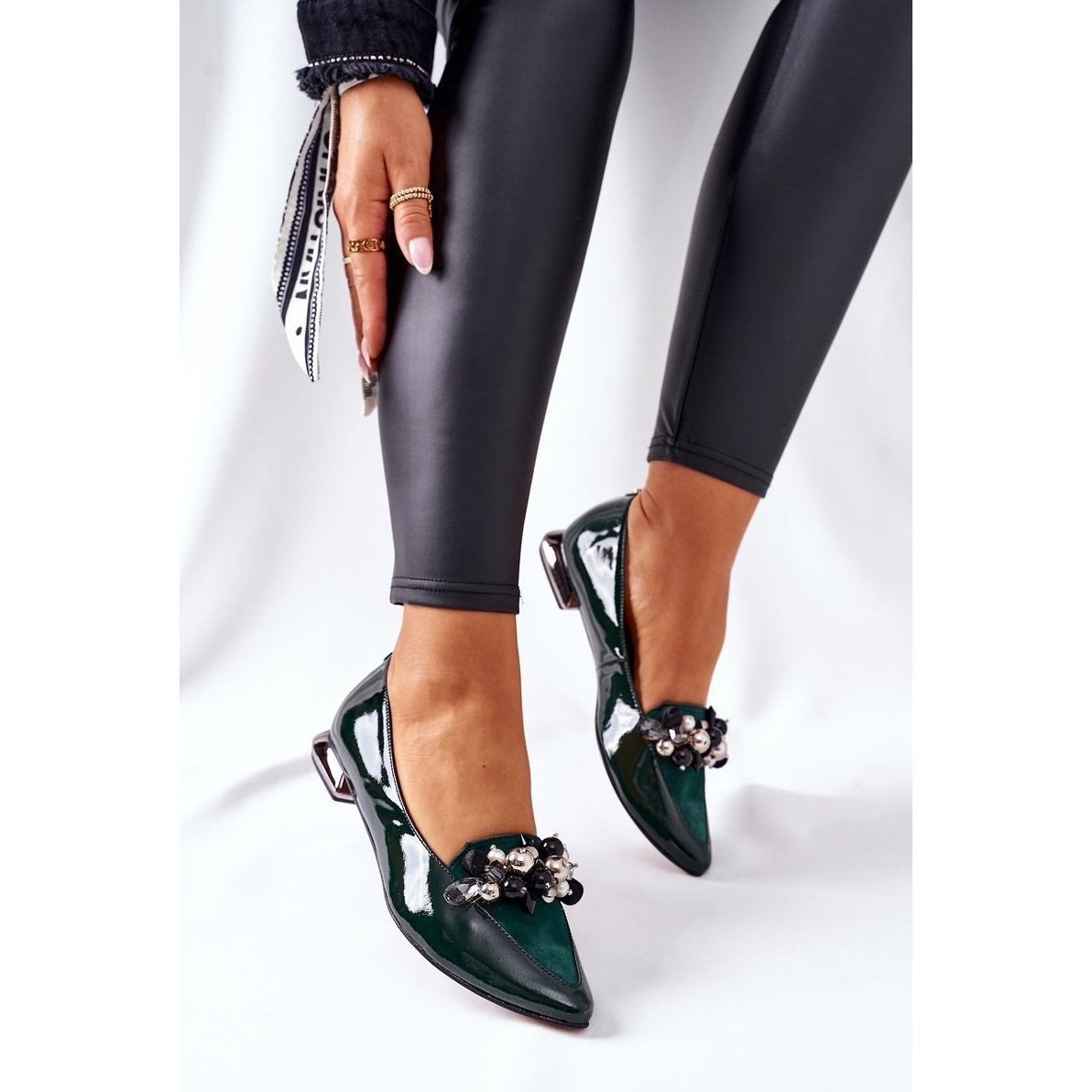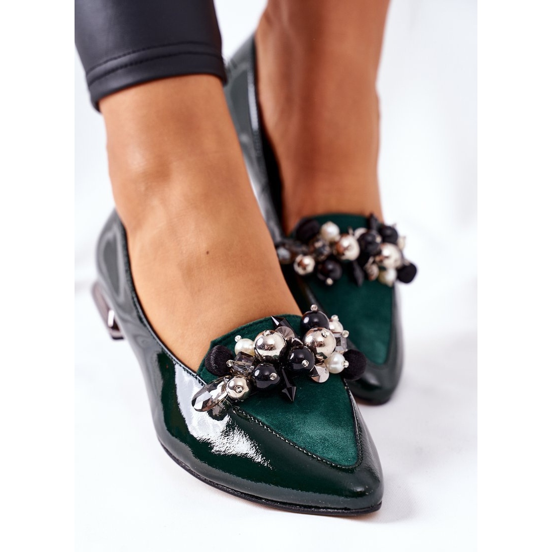 Les ballerines sont sans aucun doute l'une des chaussures les plus confortables qui vont avec tout. Le modèle présenté est entièrement réalisé en cuir verni, ce qui les rend très élégants et aussi très confortables. Une décoration à la mode sous la forme de grosses perles sur le nez souligne leur style unique. Lorsque vous choisissez une taille, veuillez utiliser le tableau des tailles.