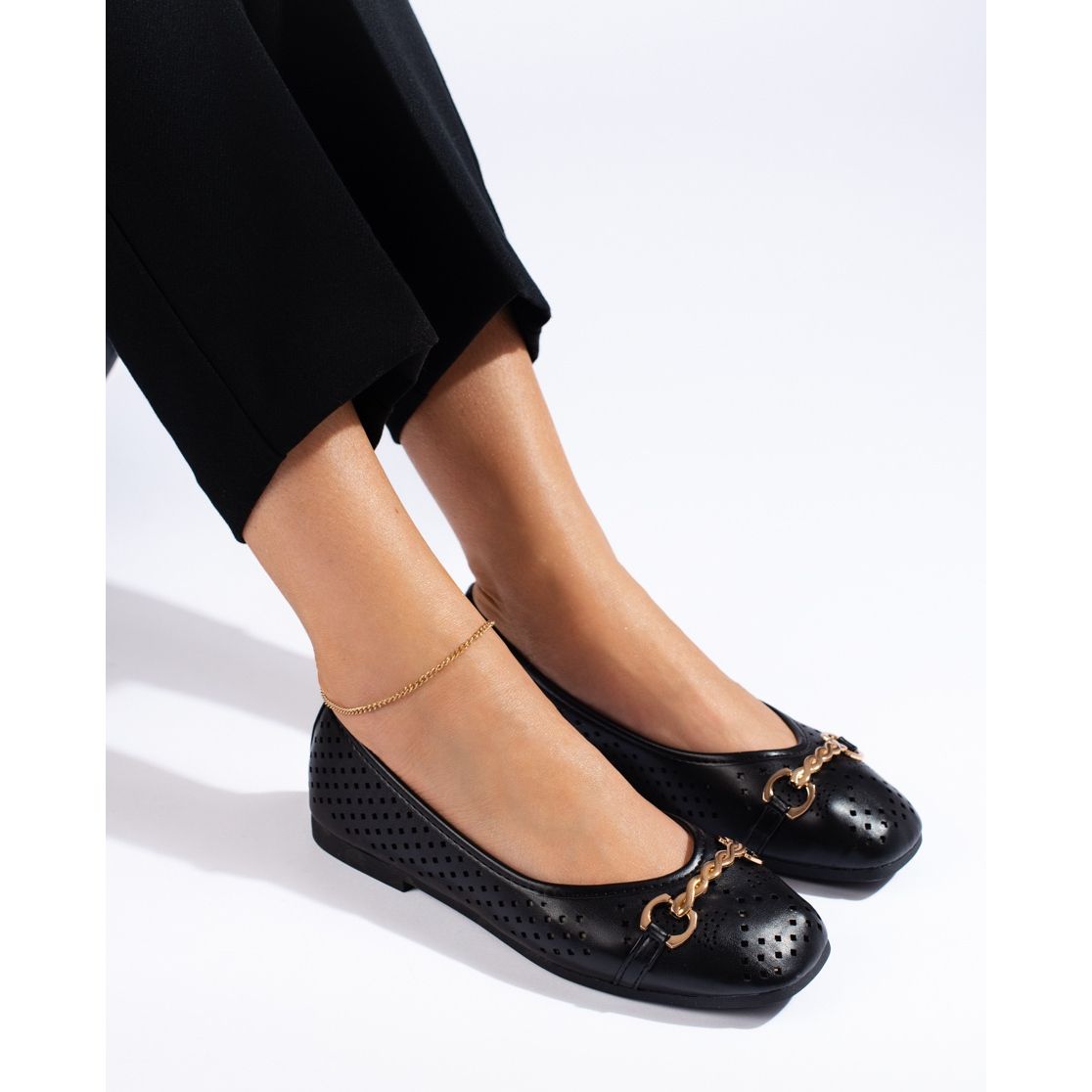Ballerines femme noires ajourées avec chaîne Shelovet