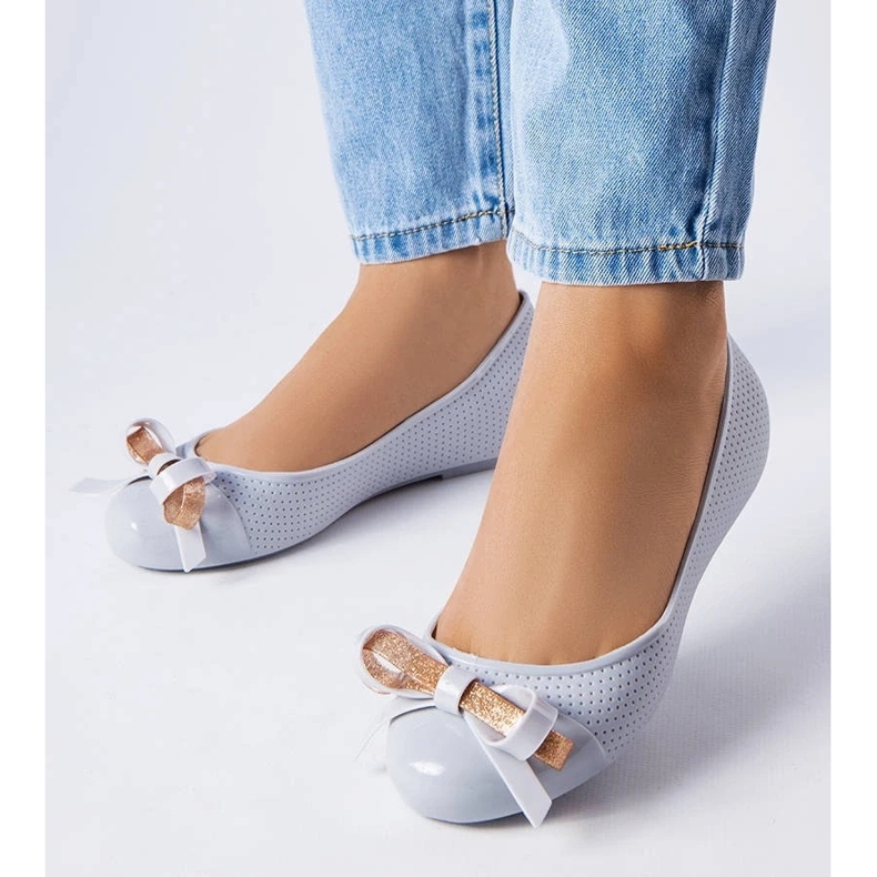 Ces ballerines glissantes se distinguent par une semelle plate avec une augmentation délicate, ce qui assure le confort lors des activités quotidiennes. La hausse basse décorée d'un petit fil à la cheville leur donne un caractère subtil. À son tour, un nez spacieux avec un grand arc ajoute un charme unique à l'ensemble et signifie que vous pouvez porter ces chaussures quotidiennement et pour des occasions spéciales.