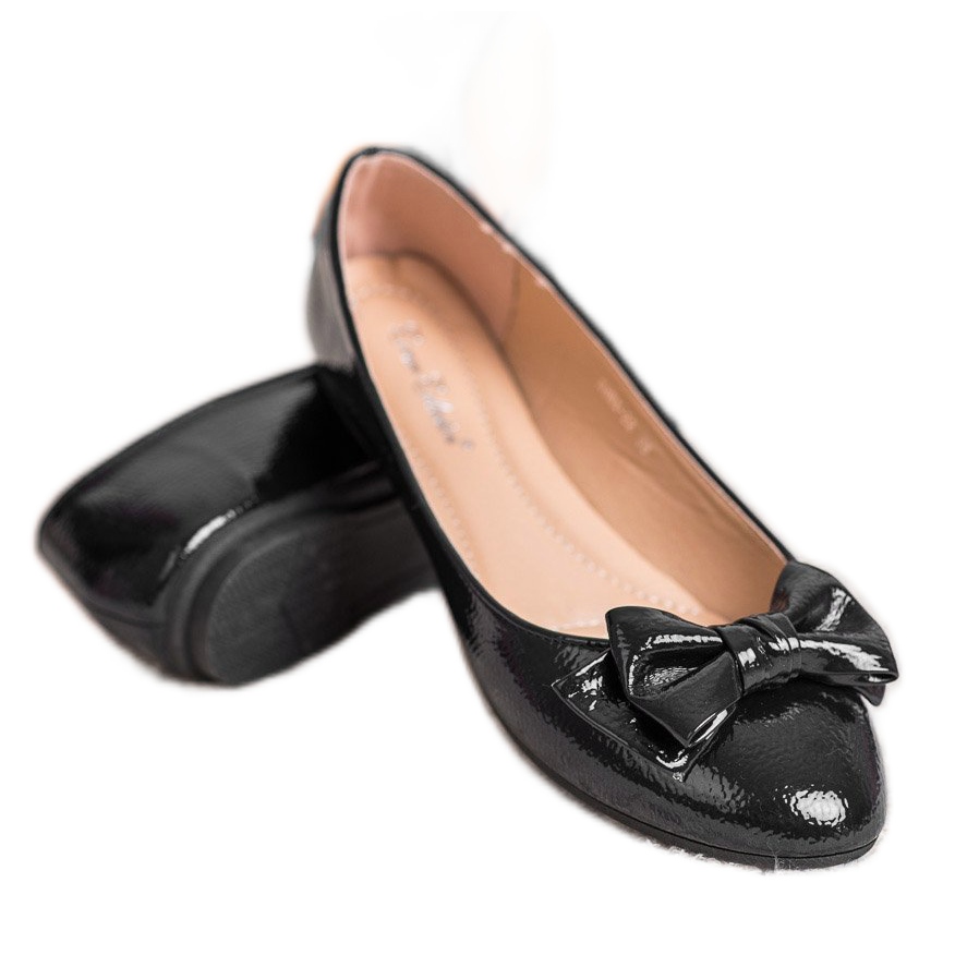 Détails: Comer Ballerines Laquées Avec Noeud le noir