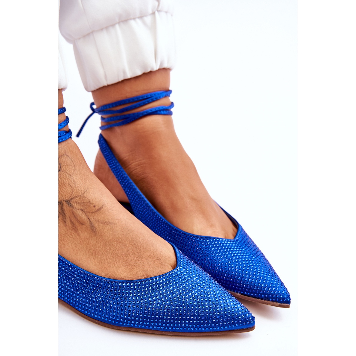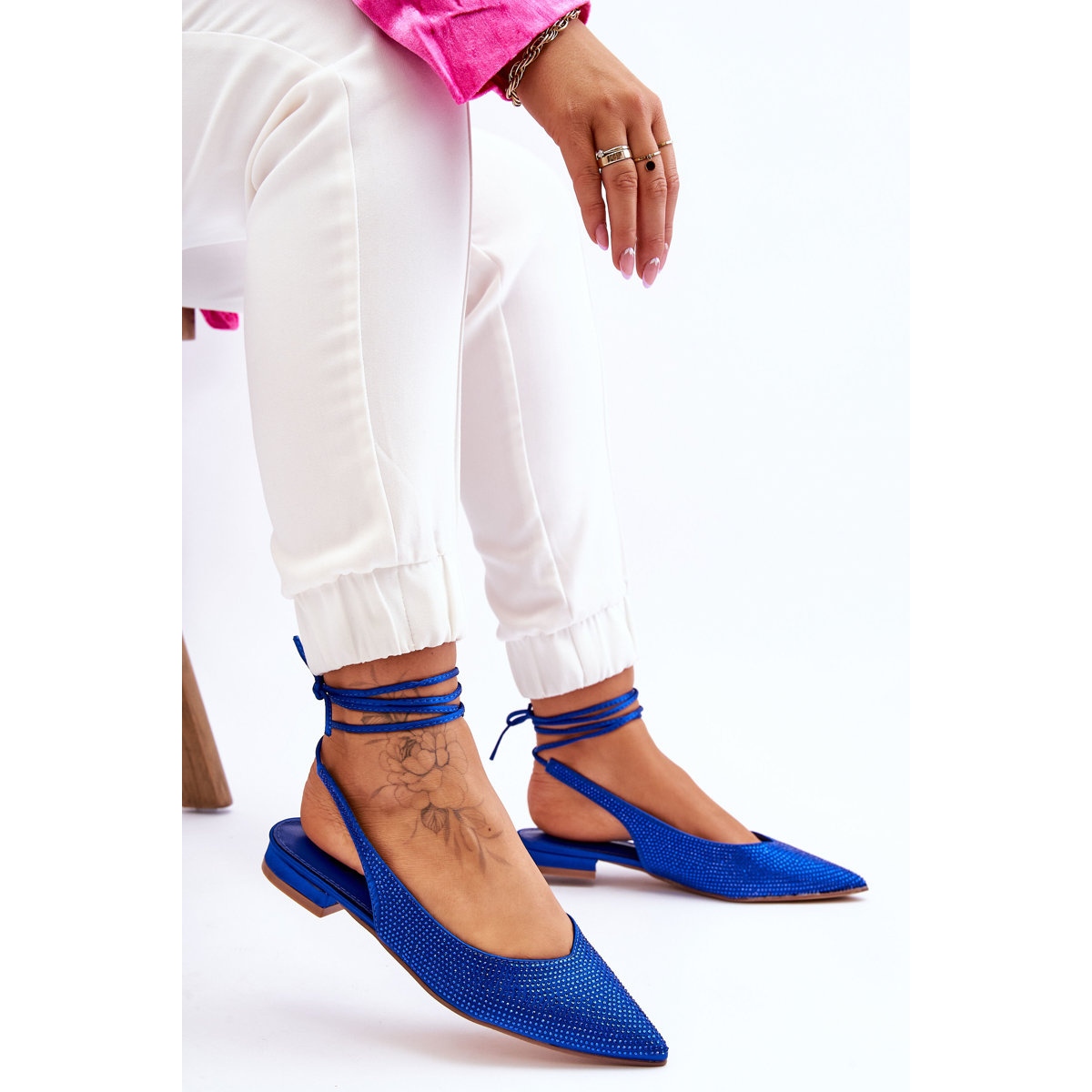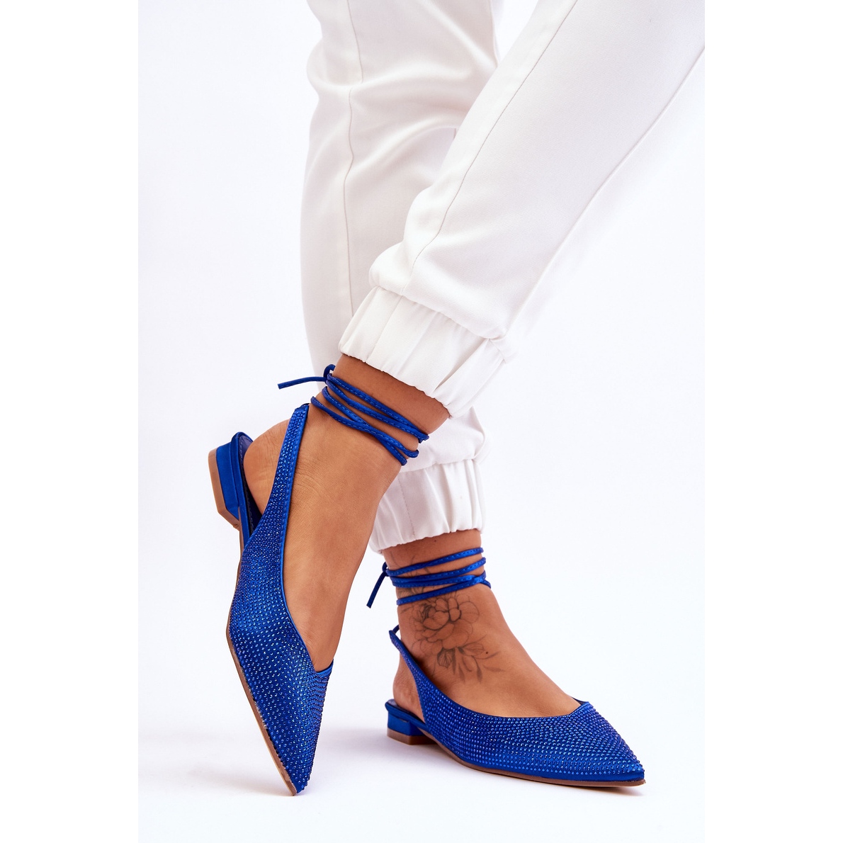 Le plus grand avantage de ces ballerines est leur apparence unique. La tige, richement décorée de strass, confère aux chaussures un caractère et un éclat uniques, les rendant parfaites aussi bien pour les styles de tous les jours que pour les styles plus élégants. Le talon plat de 2 cm de haut garantit stabilité et confort même lorsqu'il est porté toute la journée. Un avantage supplémentaire est le lien autour du mollet, qui non seulement rend le look plus attrayant, mais vous permet également d'ajuster les chaussures à vos besoins individuels, garantissant ainsi un ajustement parfait.