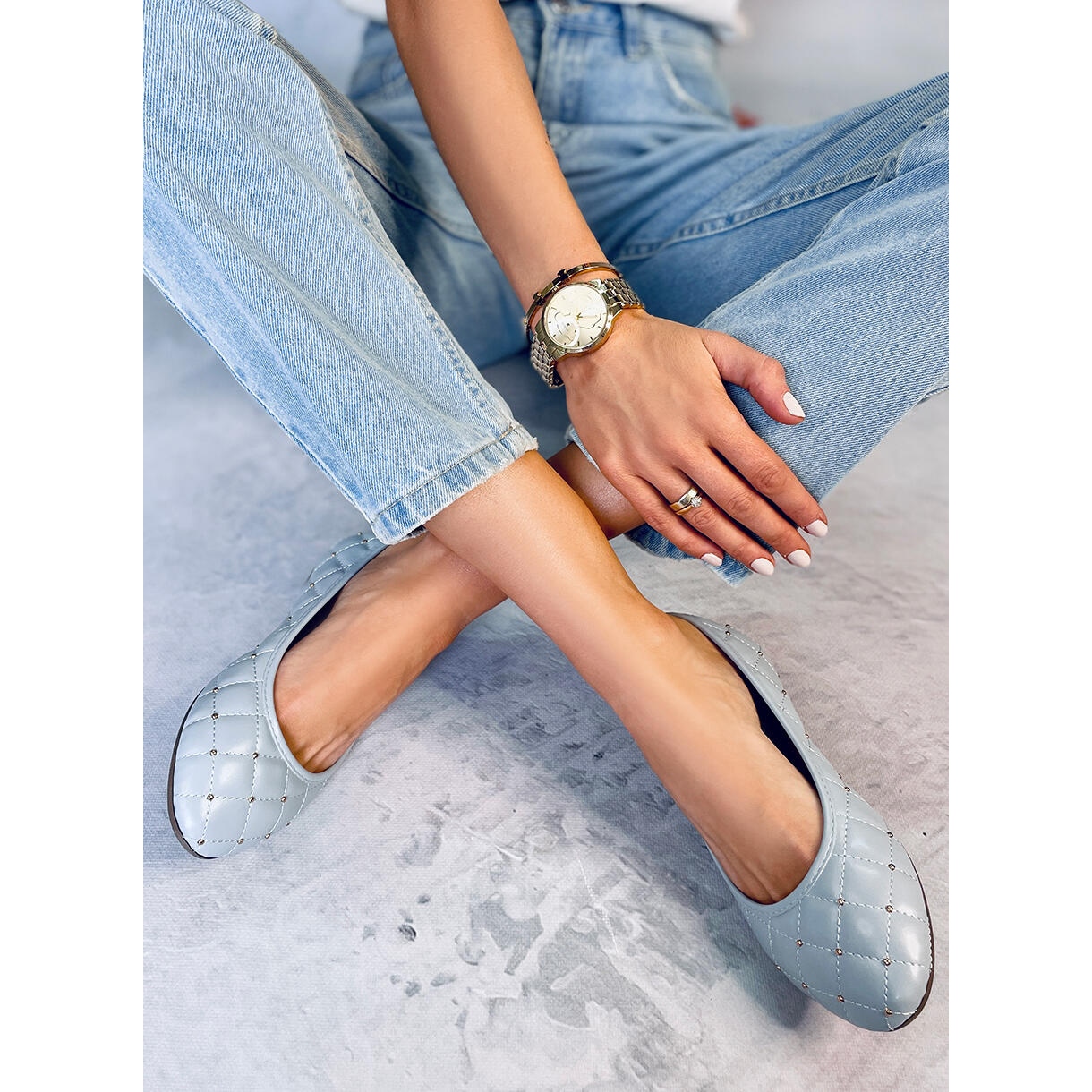 Découvrez l'élégance et le confort avec les ballerines Mesto LT.BLUE dans une belle nuance de bleu ! Ces ballerines pour femme en pleine fleur séduisent non seulement par leurs couleurs, mais aussi par leur motif matelassé unique orné d'accessoires dorés qui attireront certainement l'attention.
