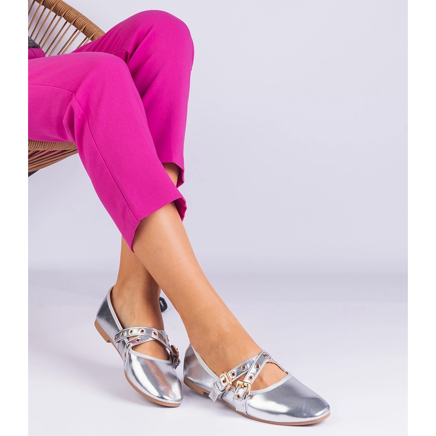 Des ballerines métalliques argentées en écot-heather du fabricant Une autre marque est une proposition qui ajoutera de la splendeur à tout style. Grâce à leurs couleurs élégantes dans une nuance d'argent, ces ballerines deviennent le complément parfait aux tenues décontractées et plus élégantes.