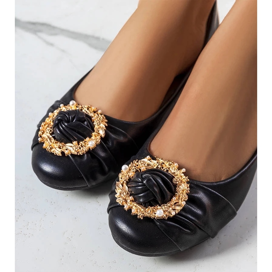 D/GMR D/GMR Ballerines noires à ornements dorés Antoinette le noir