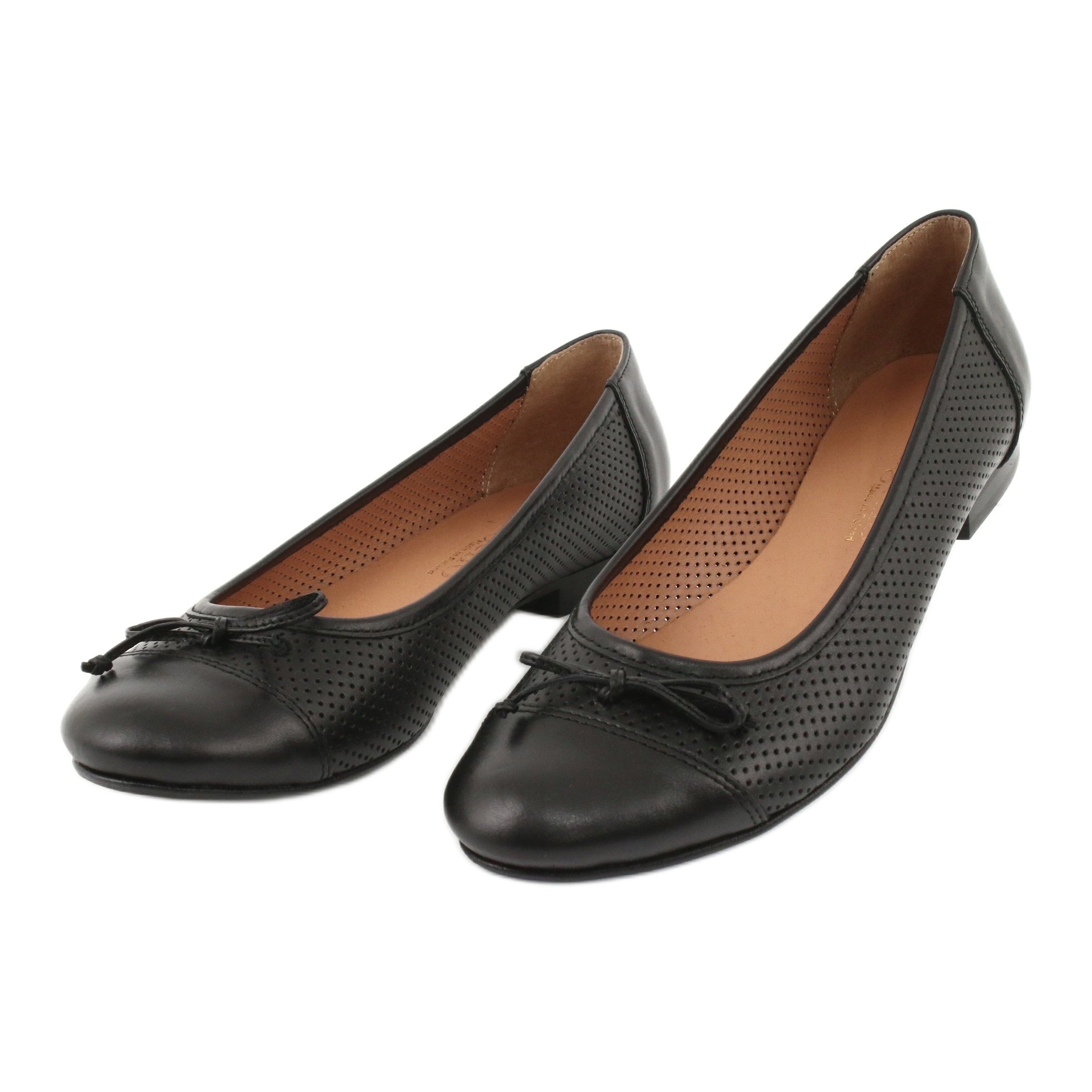 Les ballerines noires ajourées avec nœud Angello 761 sont un choix parfait pour toutes les femmes qui apprécient l'élégance et le confort. Fabriquées entièrement en cuir véritable, ces chaussures sont non seulement superbes, mais offrent également une durabilité exceptionnelle. Grâce aux propriétés du cuir, les ballerines ne frottent pas et ne font pas transpirer les pieds, ce qui les rend parfaites pour les longues journées d'été.