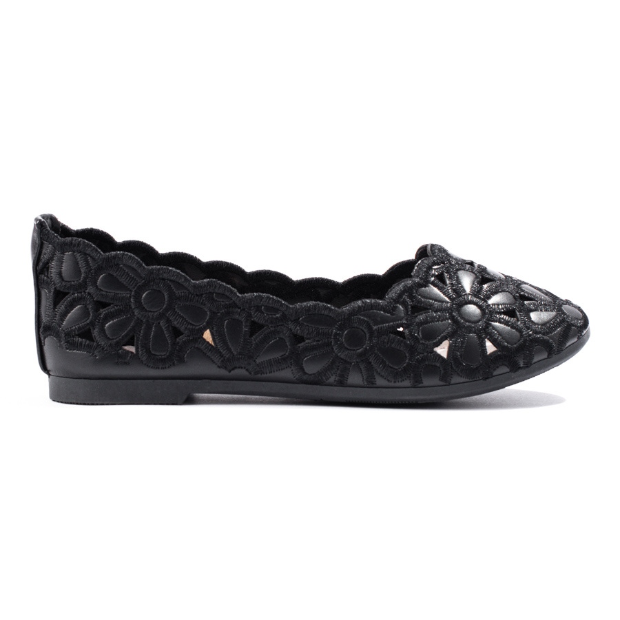 La semelle en plastique est lisse, ce qui offre une bonne traction sur diverses surfaces. Grâce à leur style décontracté et élégant, ces ballerines noires sont parfaites aussi bien pour un usage quotidien que pour les occasions spéciales, ajoutant de l'élégance à n'importe quelle tenue.