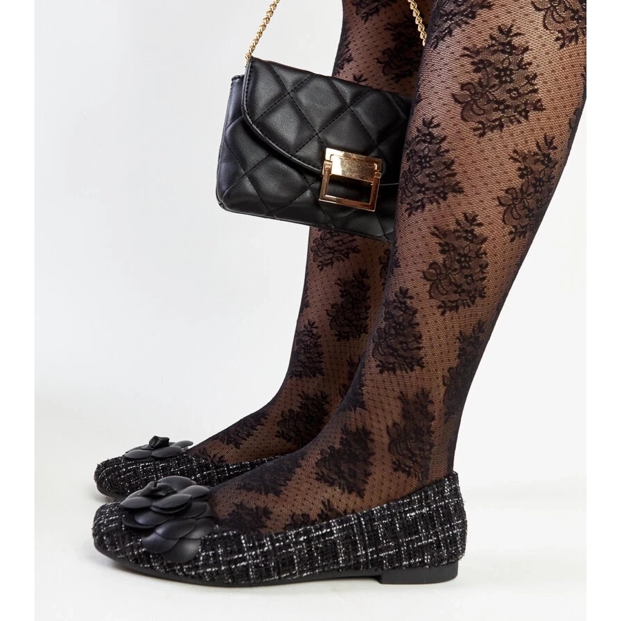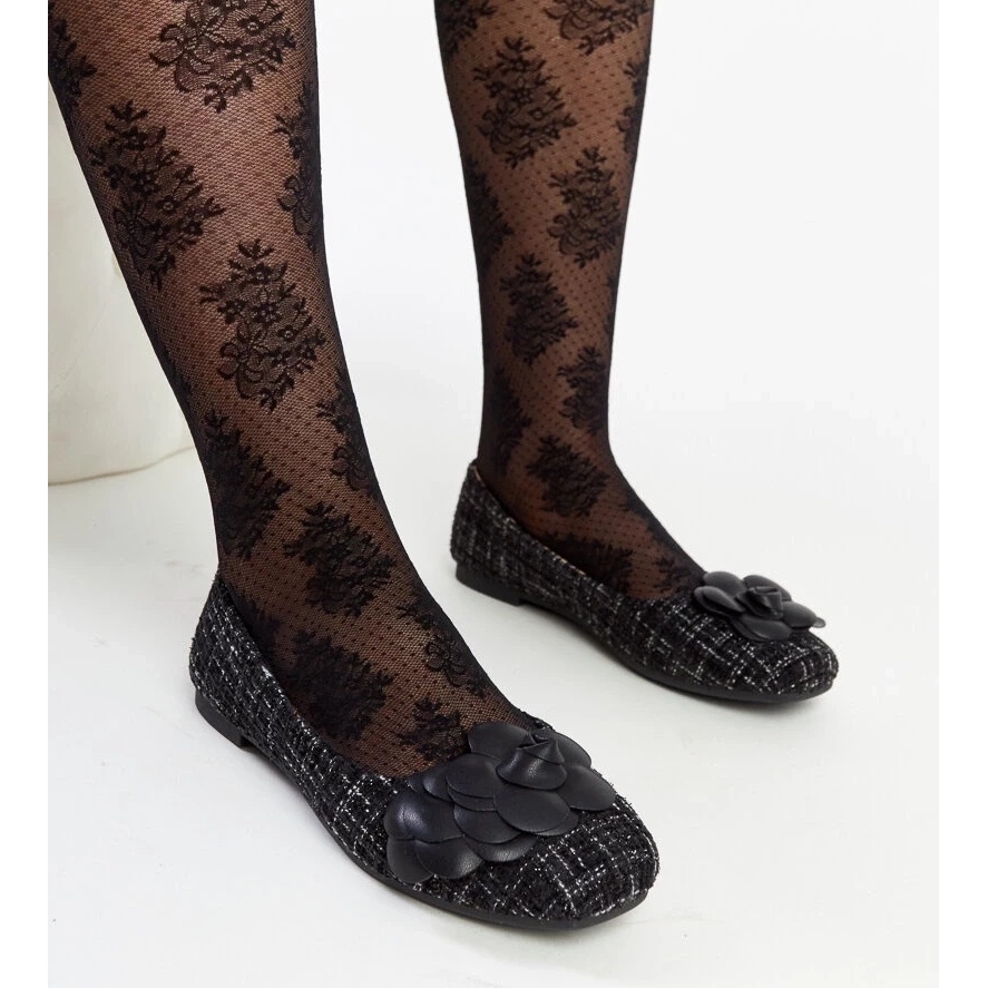 D/GMR D/GMR Ballerines noires avec fleur Mateja décorative le noir