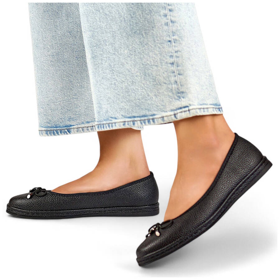 Ballerines noires confortables pour femmes avec nœud GD-XR392A-B