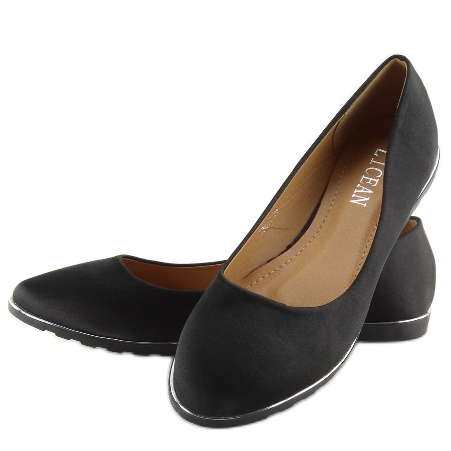 Découvrez l'élégance et le confort avec les ballerines en satin A8621 d'une couleur noire classique. Ces chaussures élégantes pour femmes allient design tendance et confort de port, parfaites aussi bien pour un usage quotidien que pour les occasions spéciales. Elles se distinguent par un subtil liseré argenté le long de la semelle, qui leur apporte chic et élégance.