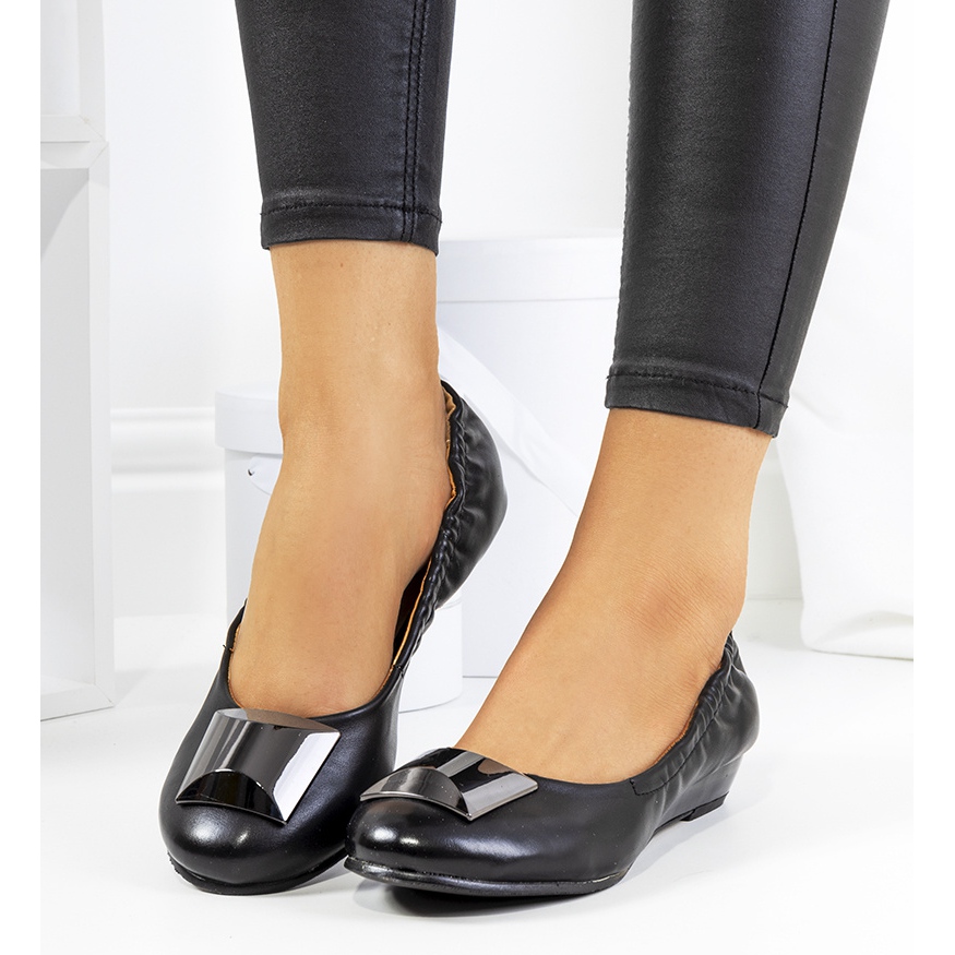 Les ballerines Sofia sont fabriquées en éco-cuir dans une couleur noire classique. Le bout est orné d'une grosse boucle. Le petit talon souligne joliment le style ballerines. La trépointe dans la tige assurera un ajustement parfait au pied. Numérotation sous-dimensionnée, nous vous suggérons de choisir une taille plus grande.