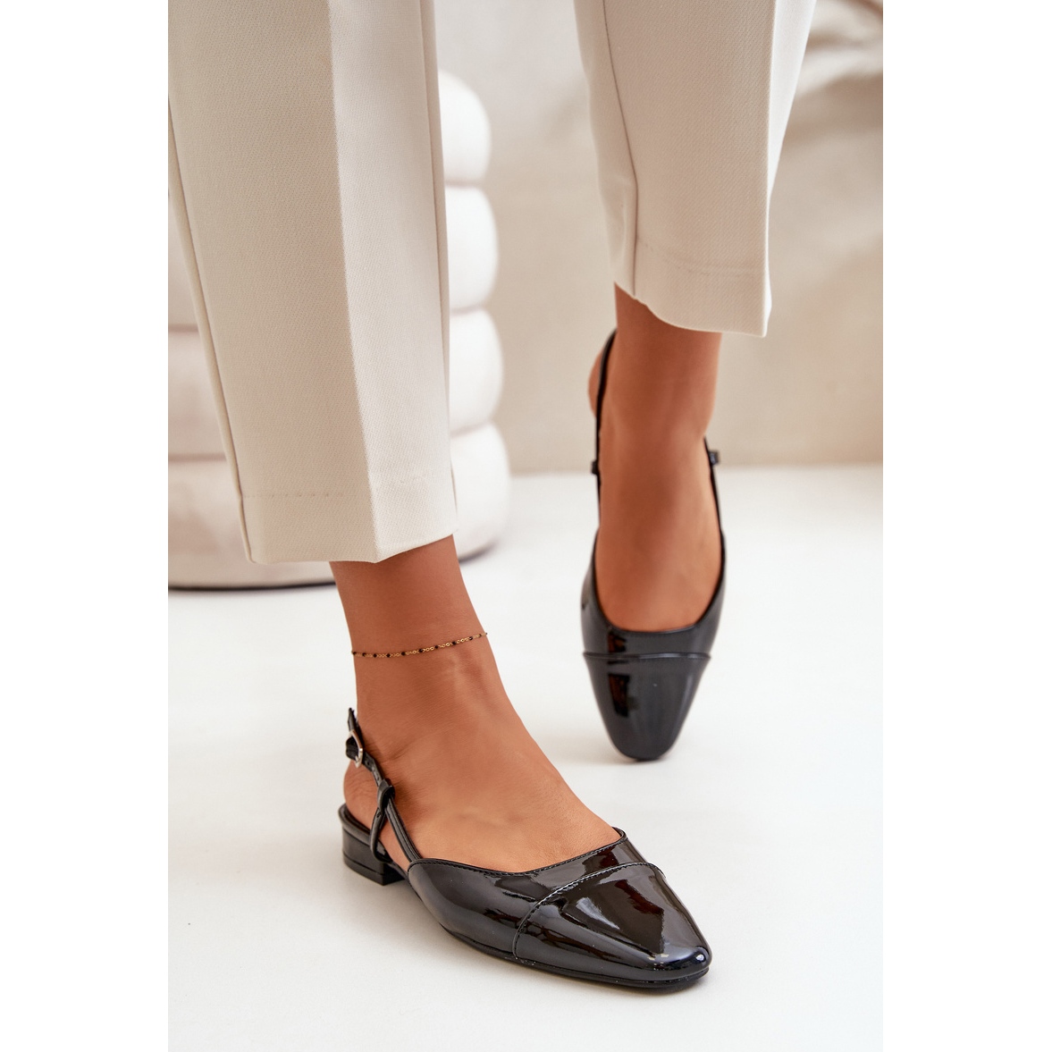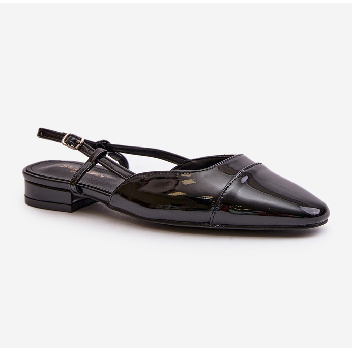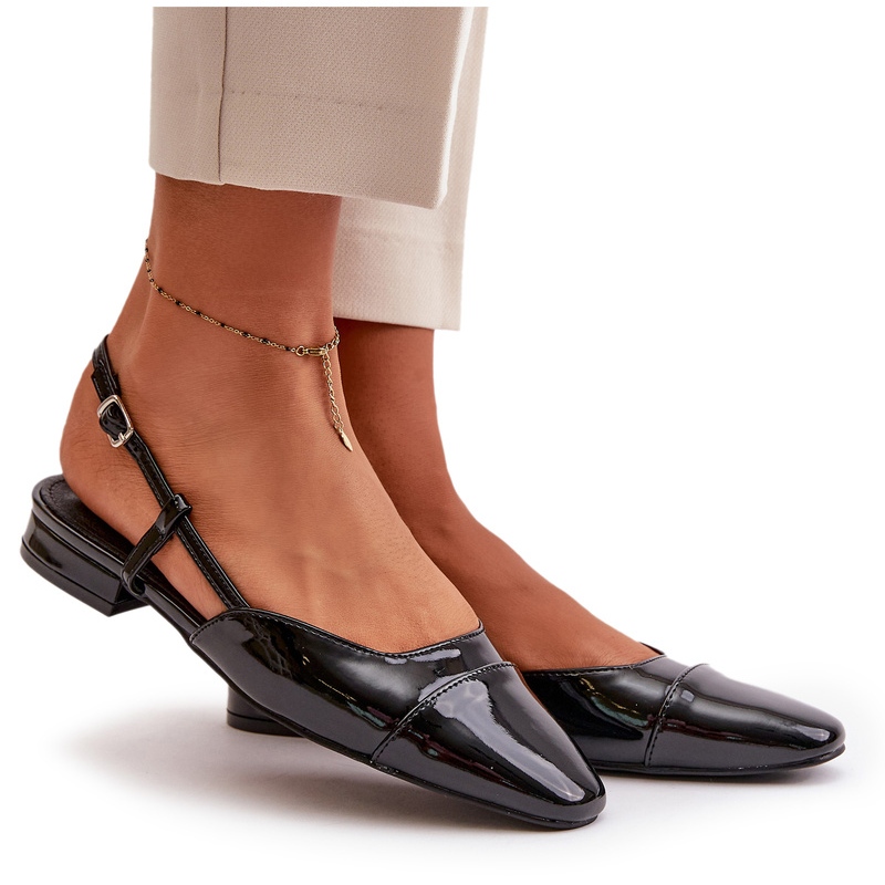Détails: Ballerines noires vernies Kairael à talons bas et talon ouvert le noir