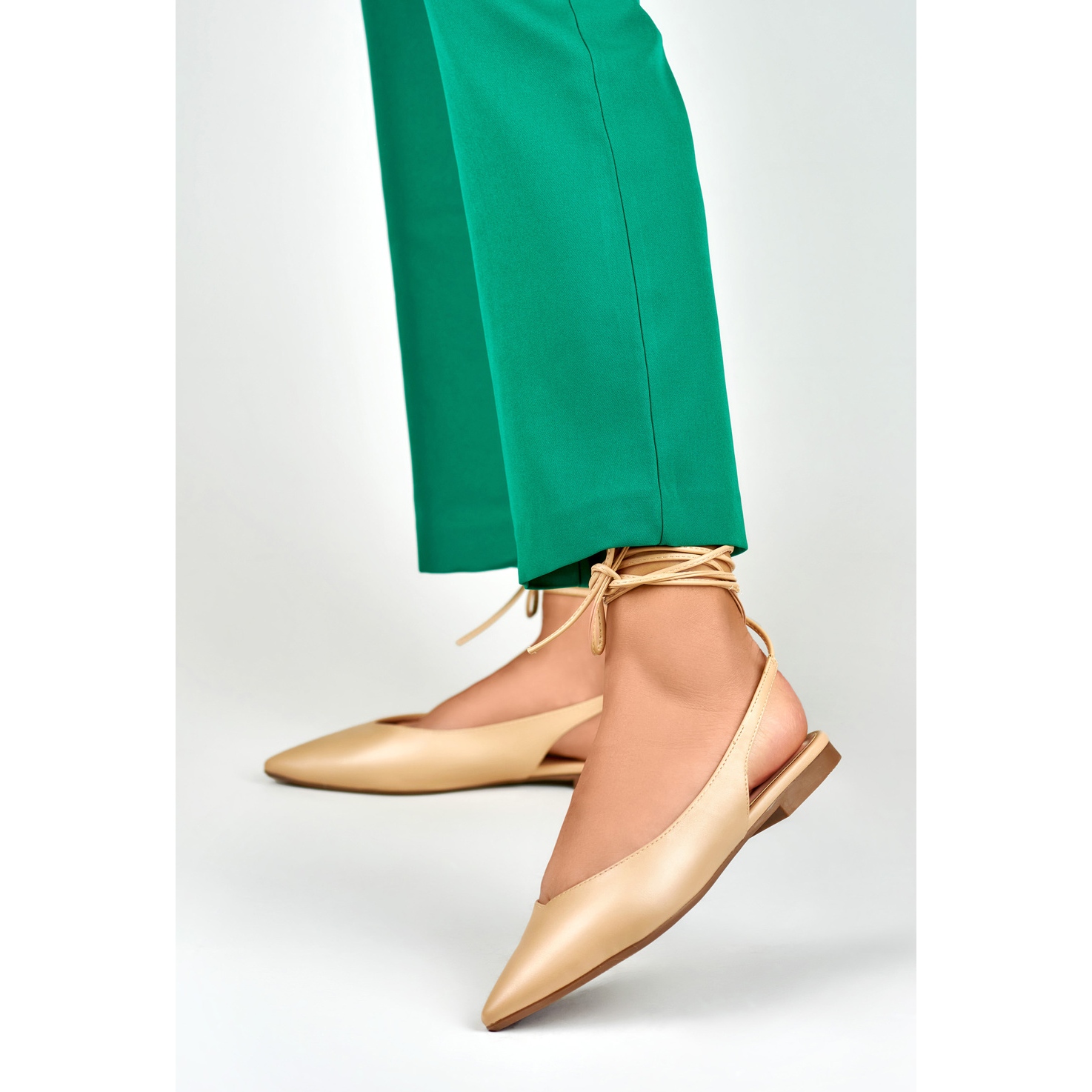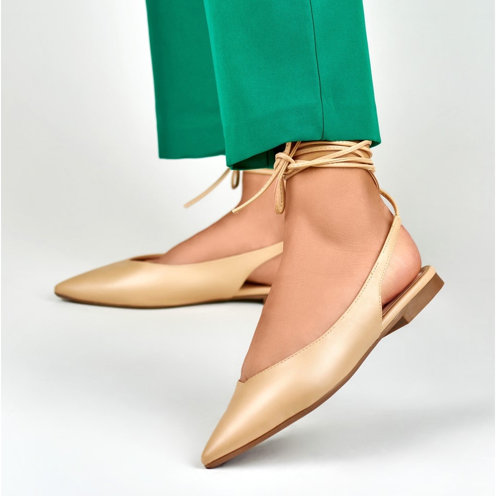 Grâce à un talon plat et un bout pointu, ces ballerines offrent un confort à chaque pas, et le laçage supplémentaire leur confère un caractère unique. La semelle intérieure et la tige sont également en cuir écologique, ce qui garantit confort et ajustement parfait au pied.