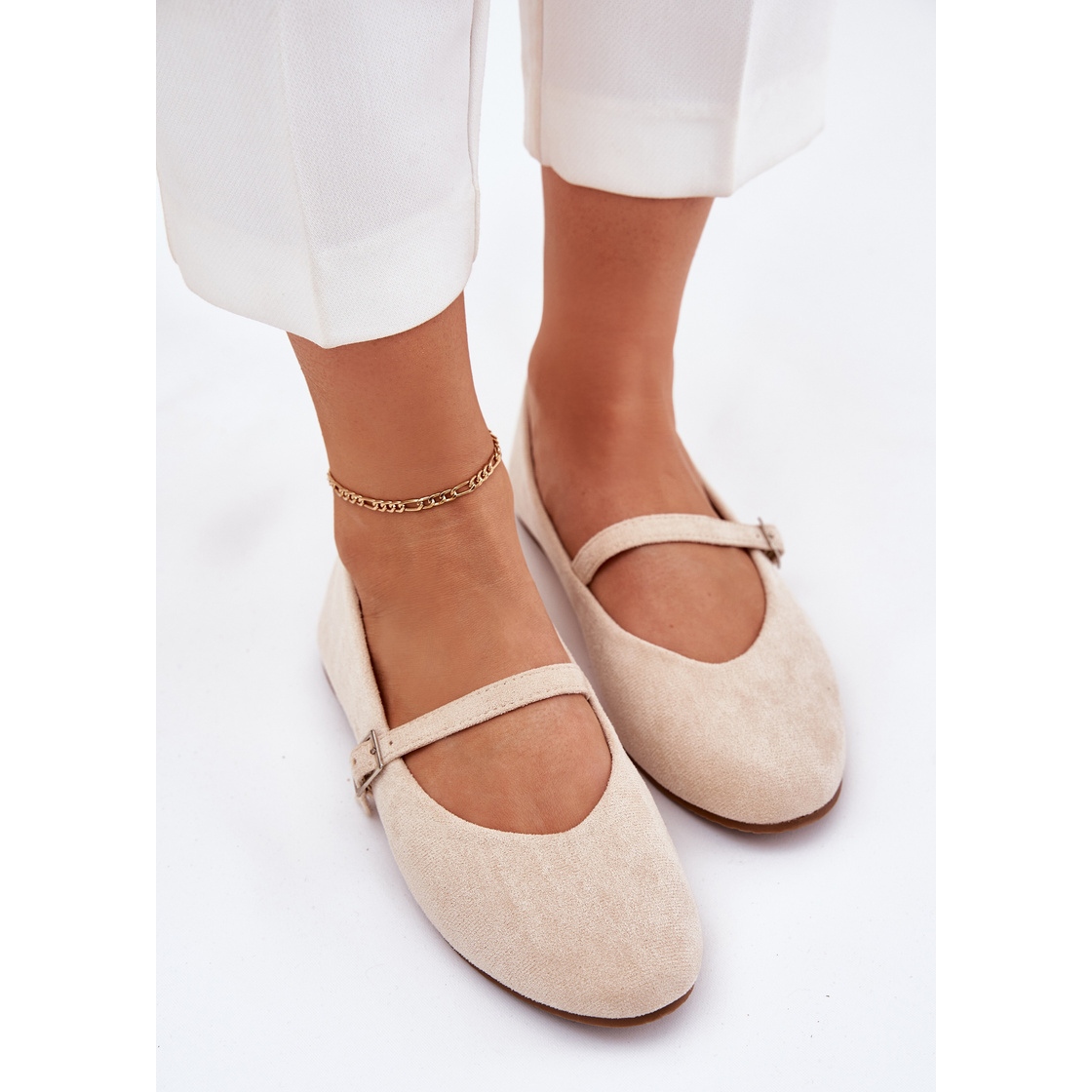 Détails: Ballerines plates avec une ceinture beige en daim eco