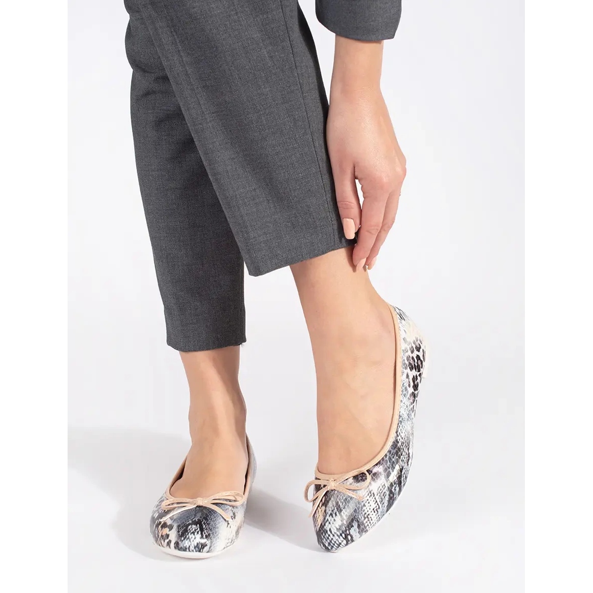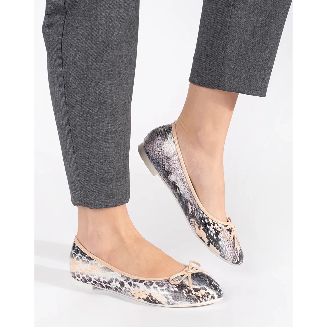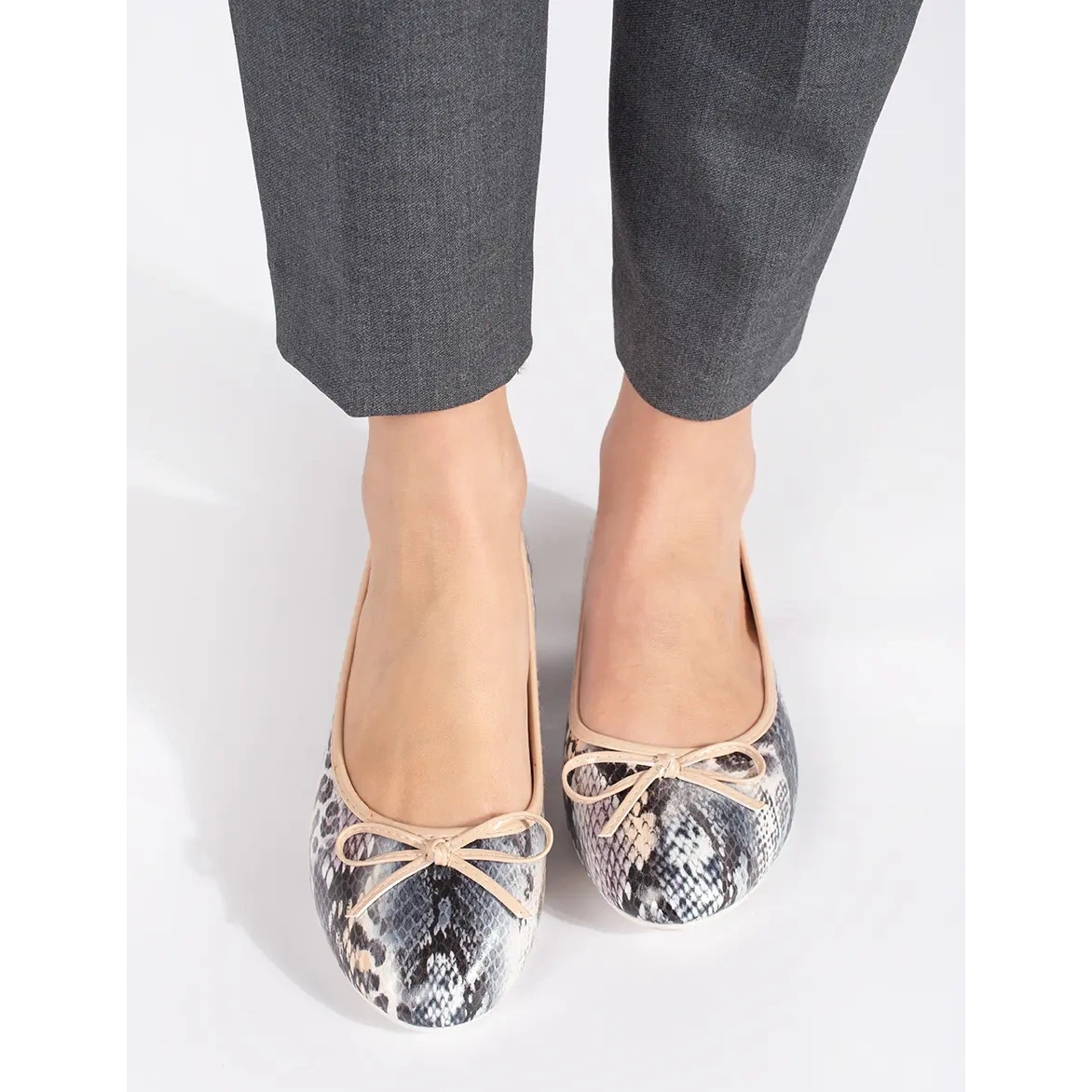 Détails: Ballerines plates femme à motif serpent et nœud beige